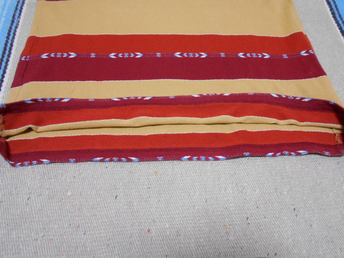 カラーは キャメルブラウン × マルーン の マルチカラーボーダー + ターコイズブルーの フィートマーク と ネイティブアメリカン幾何学模様