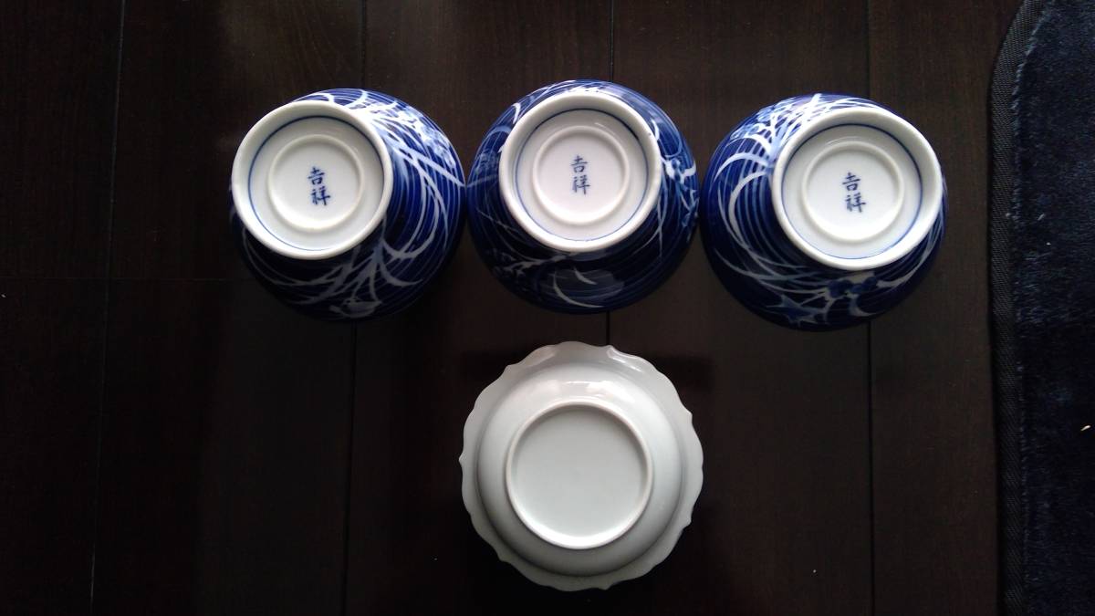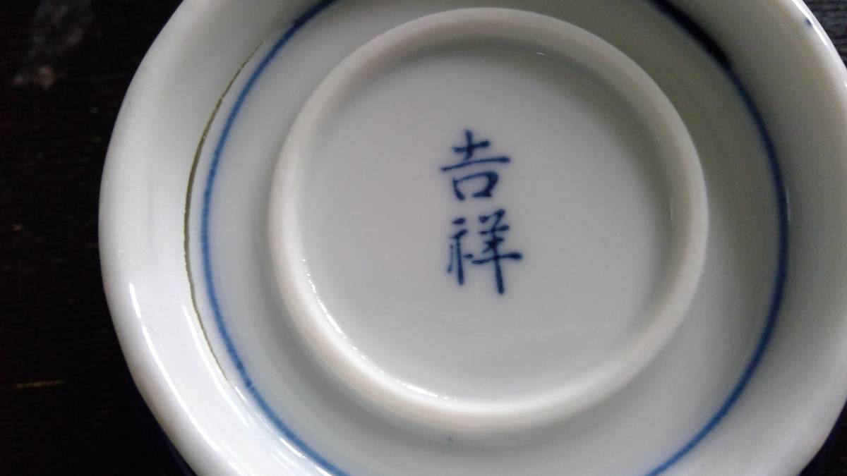 吉祥のどんぶり★器★中古★青★レトロ★★★茶碗★皿★食器★陶芸★
