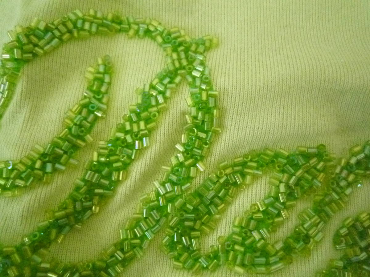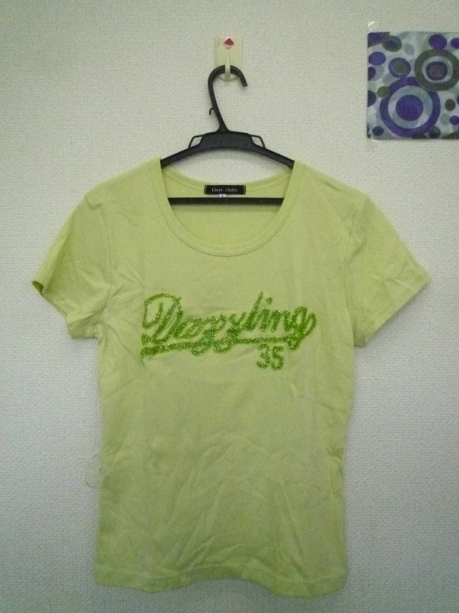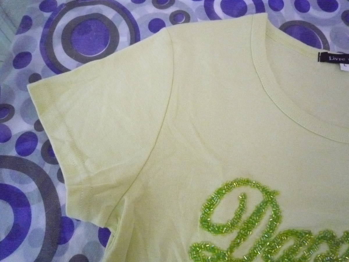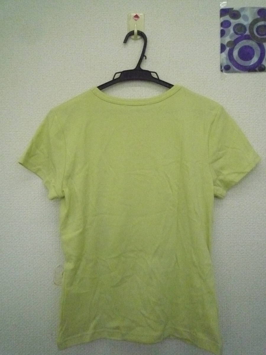 ★ニッセン 半袖Tシャツ ロゴ ビーズ 黄緑色(L)