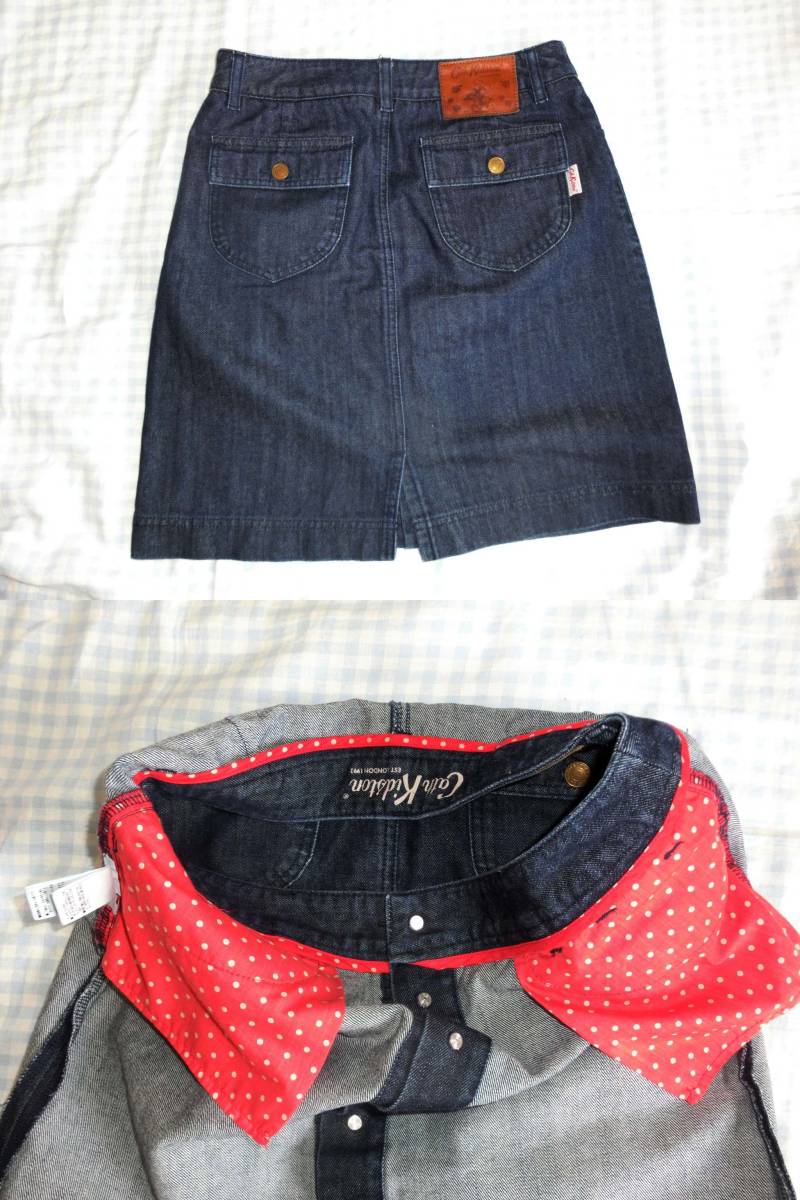 色はジーンズ青 ポケットの裏地は赤の水玉模様 素材:綿100%裏地はなし タグは牛革 サイズM ウエスト72cm着丈48cm 他にも洋服、バッグ、靴、小物、本を出品していますので見てください。