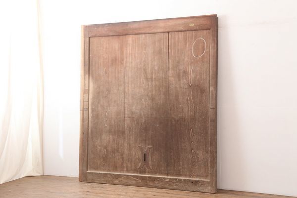 R-045020 アンティーク建具 明治大正期 総ケヤキ材 重厚な風格漂う蔵戸(玄関戸、引き戸、建具)