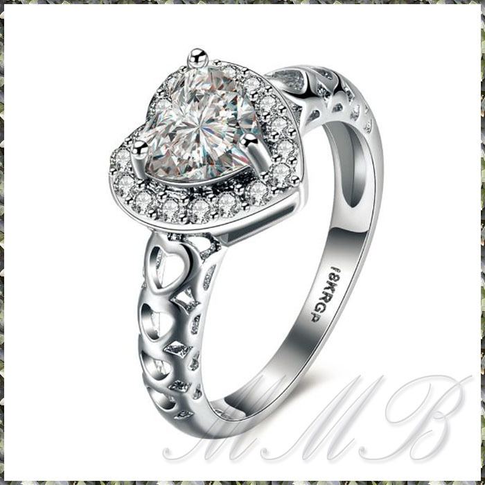 [RING] 18K White Gold Plated Side 8 Heart Hole CUTE ハート クリスタルCz ホワイトゴールド リング 18号
