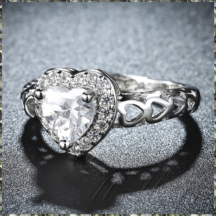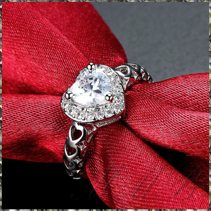 約7x7mmハートカットキュービックジルコニアがメインストーンの指輪です。