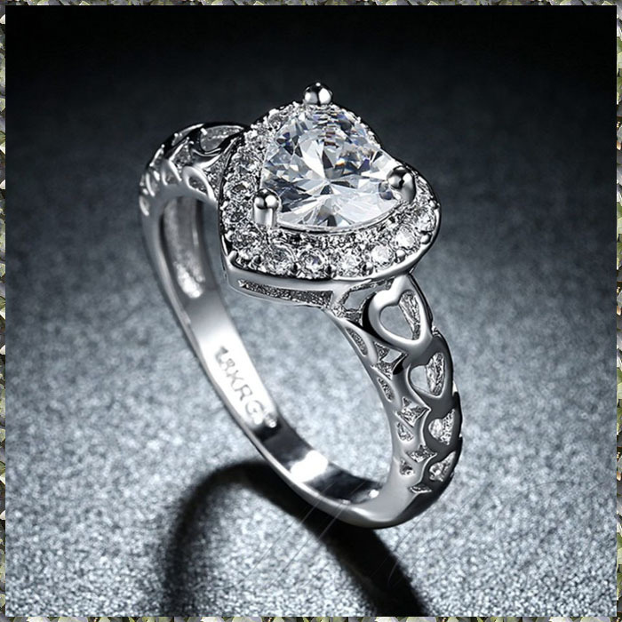 18K White Gold Plated Side 8 Heart Hole CUTE ハート クリスタルCz ホワイトゴールド リング です。