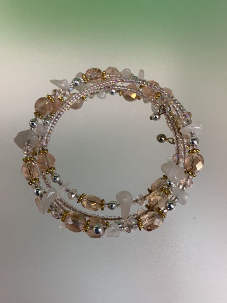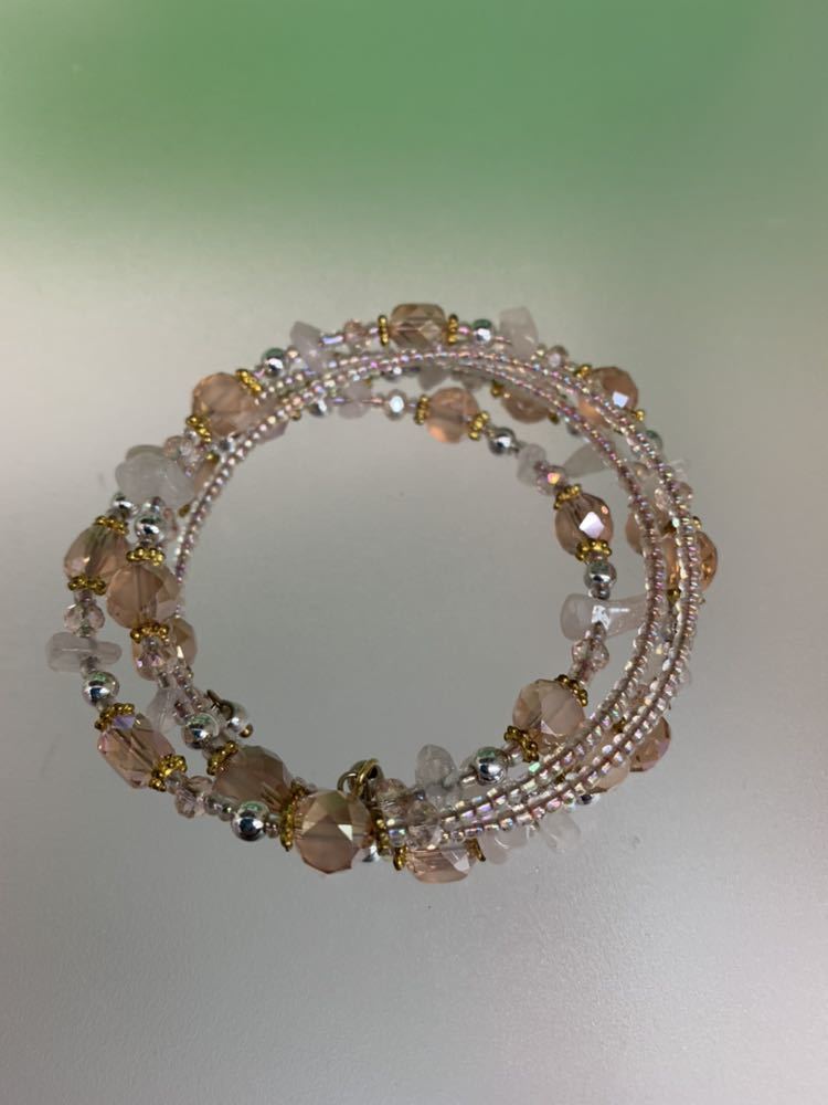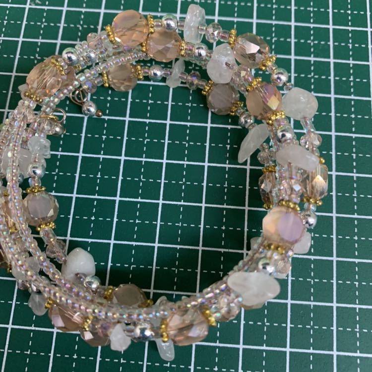 5連ワイヤーキラキラブレス★ローズクォーツ天然石/ビーズ/ピンク