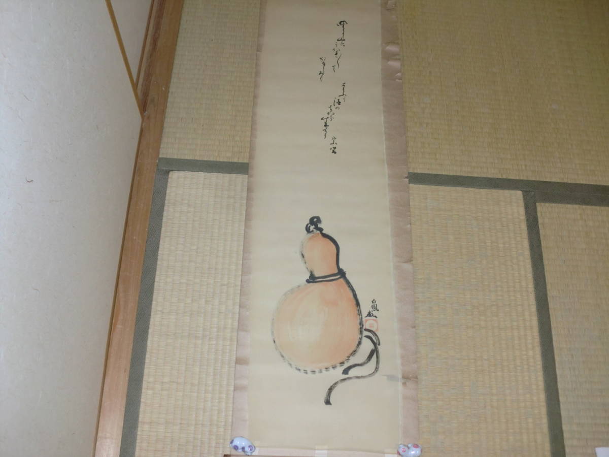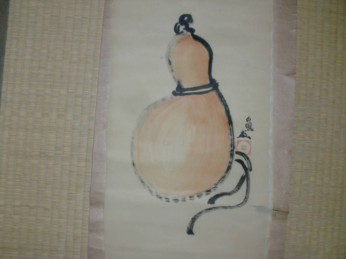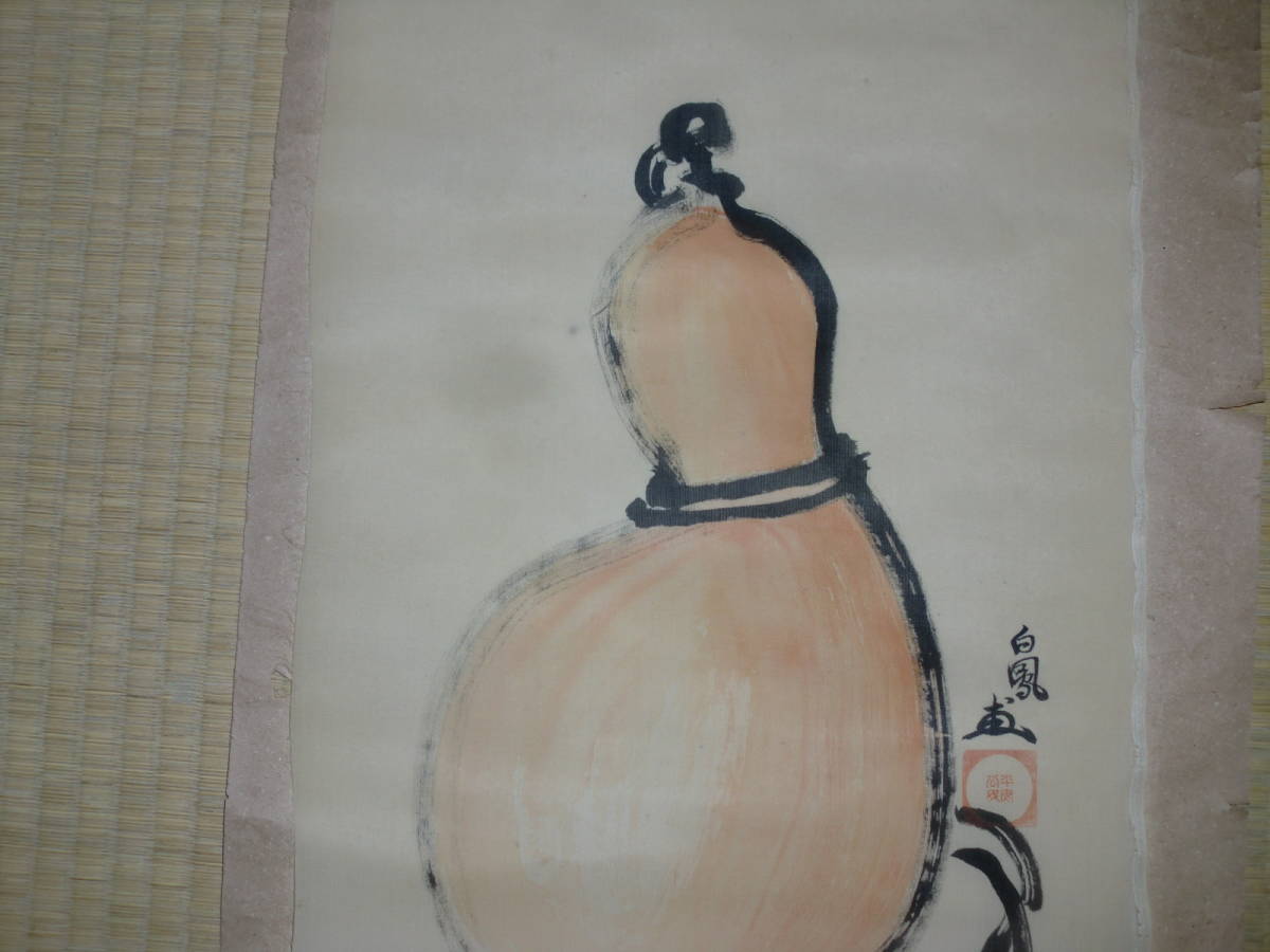 【模写】まくり トテモ綺麗で洒落た瓢箪画賛 画 白鳳 歌画賛 在銘 絹本