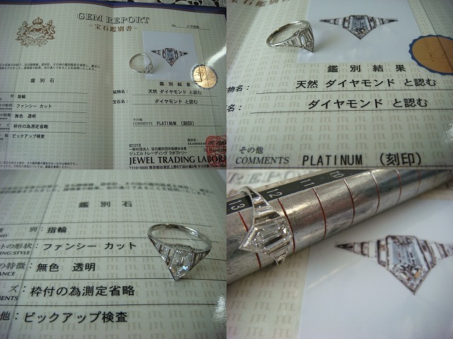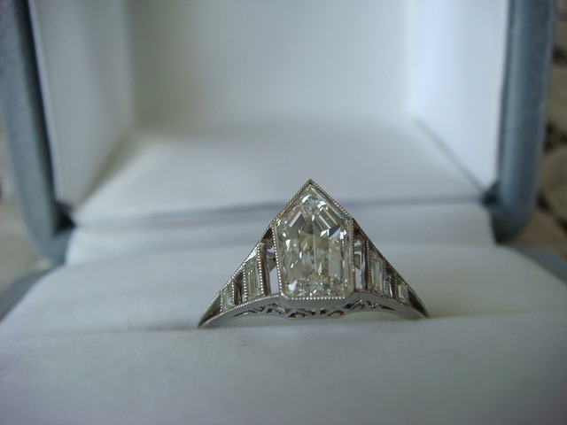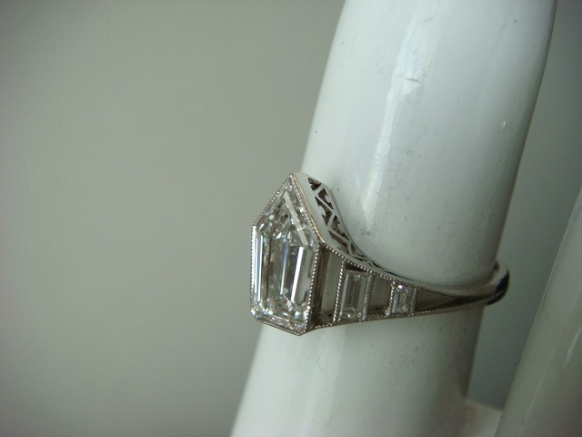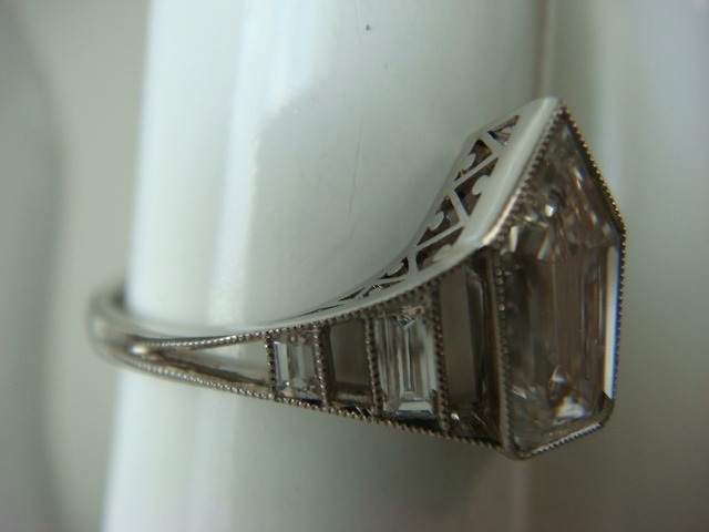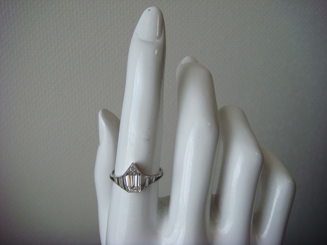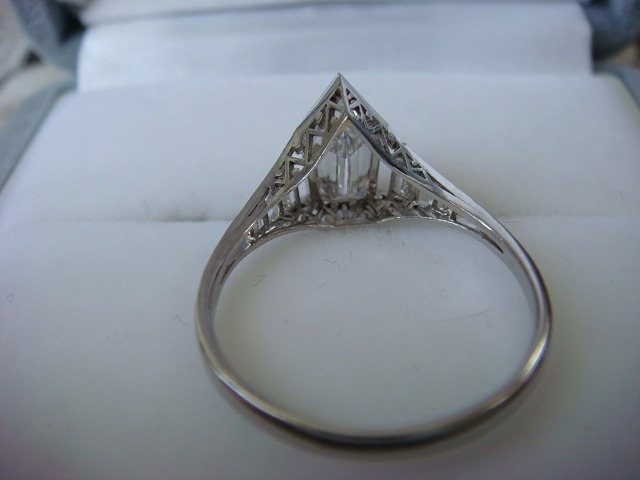 とても珍しいファンシーカットのアンティークなダイヤモンドリングです。サイズは約12,5です。プラチナ製です。PLATINUMの刻印入り。