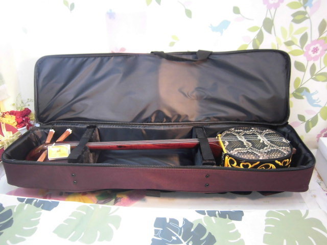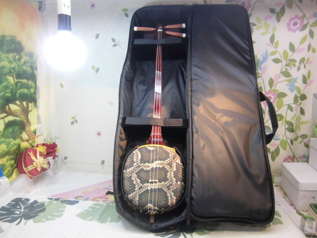 ***(送料無料)51.000円 紫檀沖縄三線人工張と松脂、ソフトケースセット