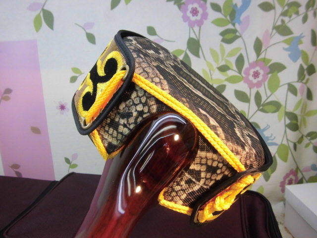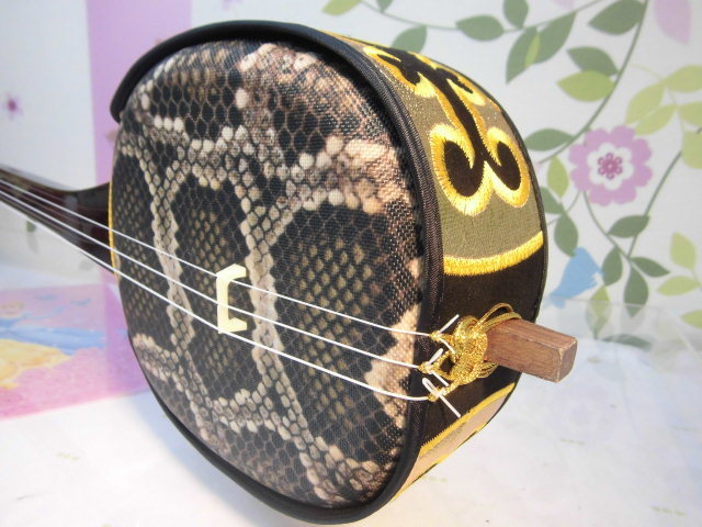 人工皮張沖縄三線の胴部分はナイロンプリント生地です。