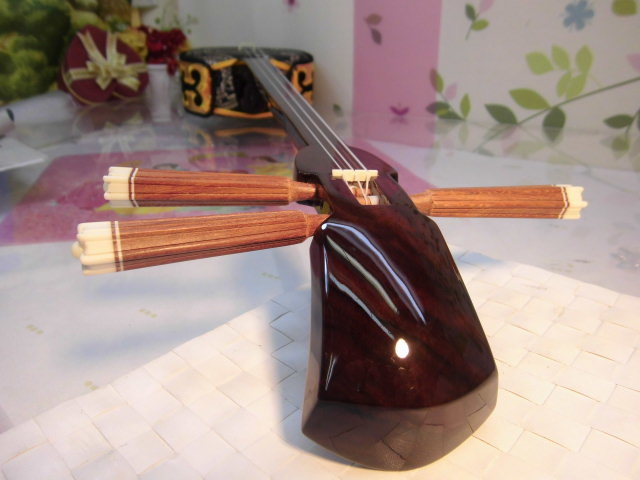 赤アズキ色の紫檀棹仕様完成品でお届けさせて頂きます。