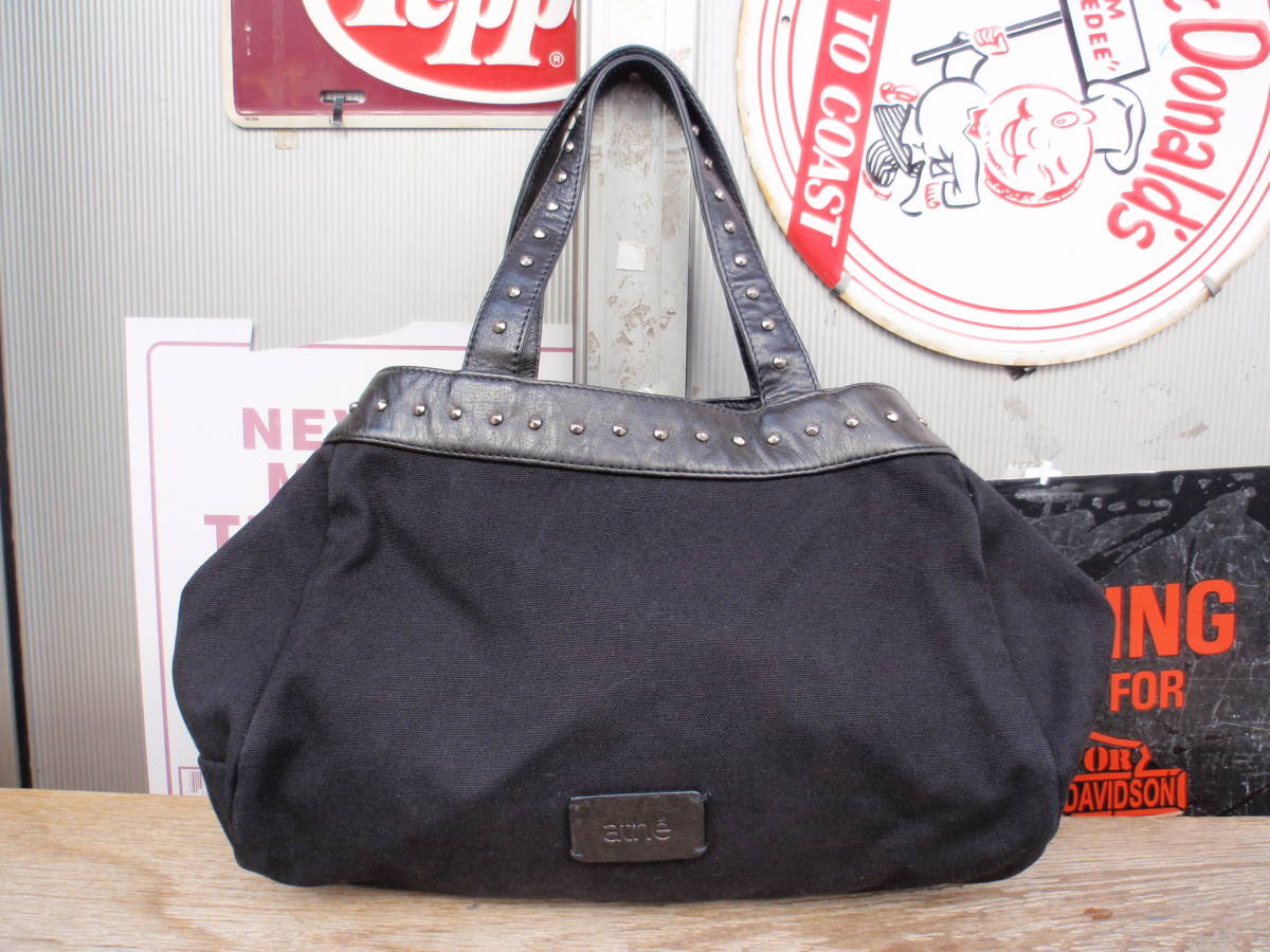 中古品ですので少し使用感や内生地にマニキュア液?跡がありますが、あまり使って無かったので、外見上の目立った汚れや傷は無く十分使えると思います。アテとバネッサブルーノがコラボした黒いキャンバス地と革を使ったハンドバッグになります。持ち手が長いので肩掛けも大丈夫です。サイズは横(底部)32センチ、縦22センチ、まち(最大)16センチ位です。パラドックス 正規品。