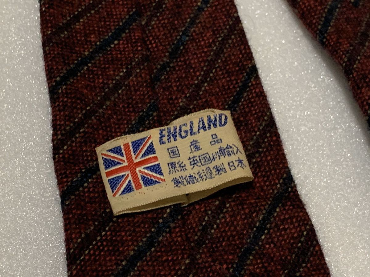 【送料無料】ウール ENGLAND 原糸 日本製 ヴィンテージ ネクタイ レトロ 小豆色 紺 斜めストライプ 古着