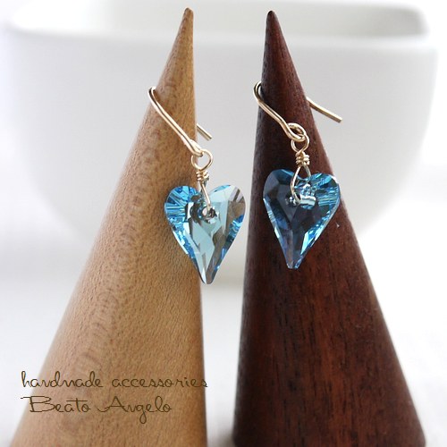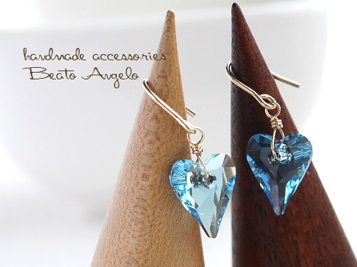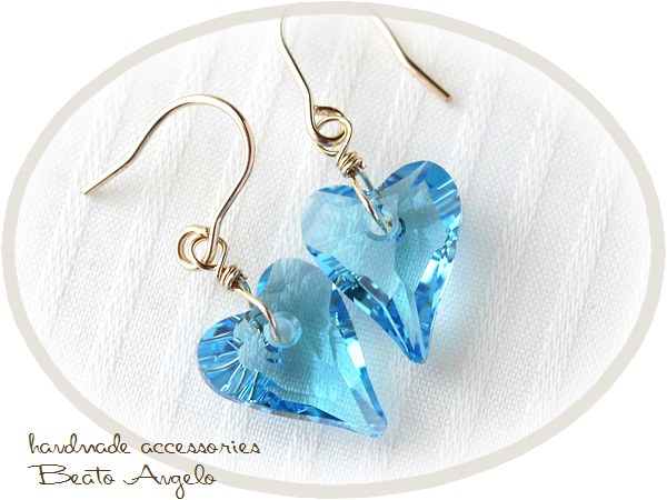 ◇◇+angelo+K14GF スワロフスキー 6240のピアス(p-014)アクアマリン ハート 一粒 水色 夏 ライトブルー ※在庫限り