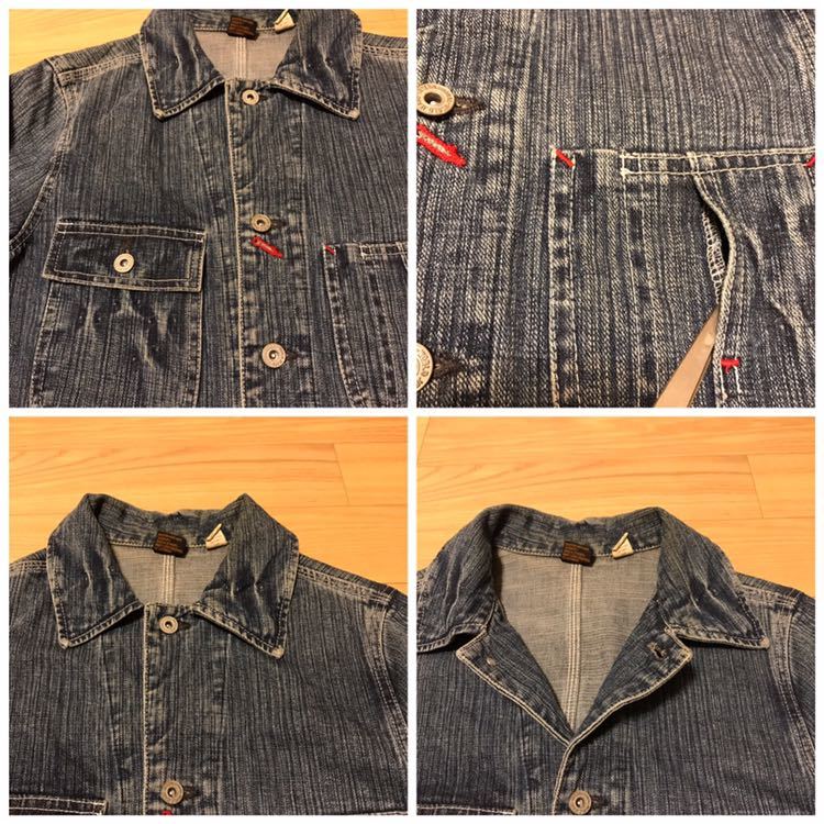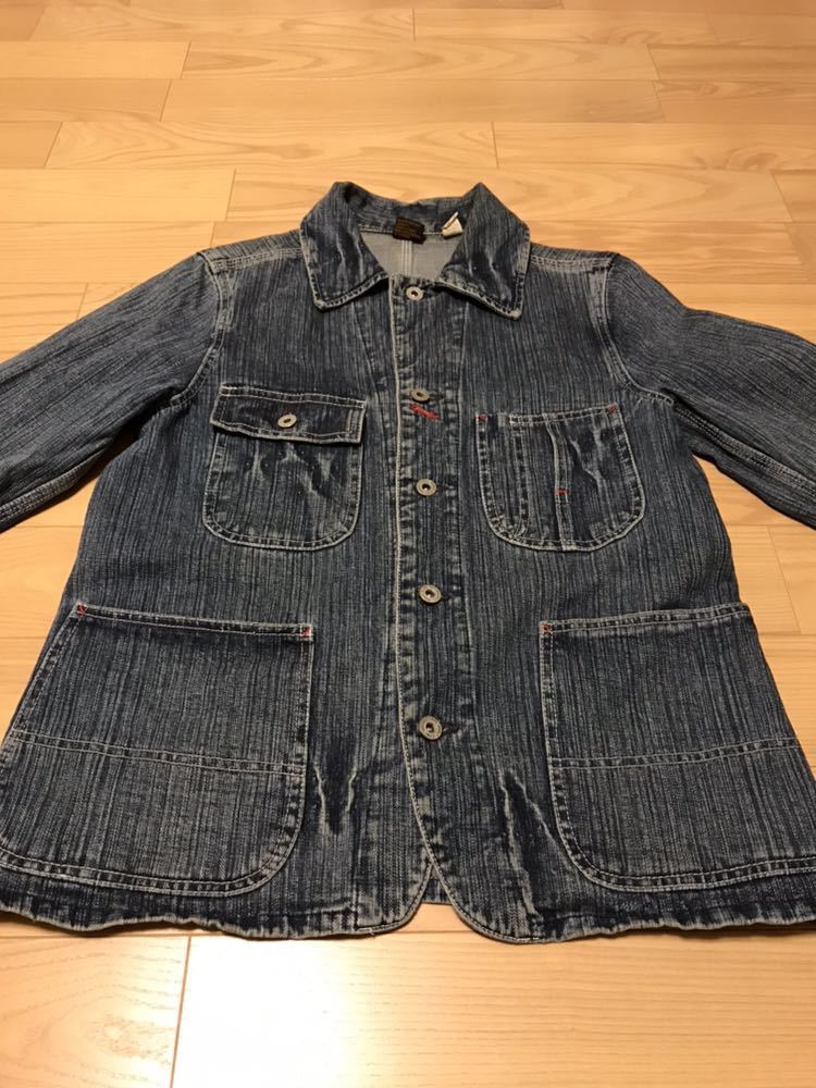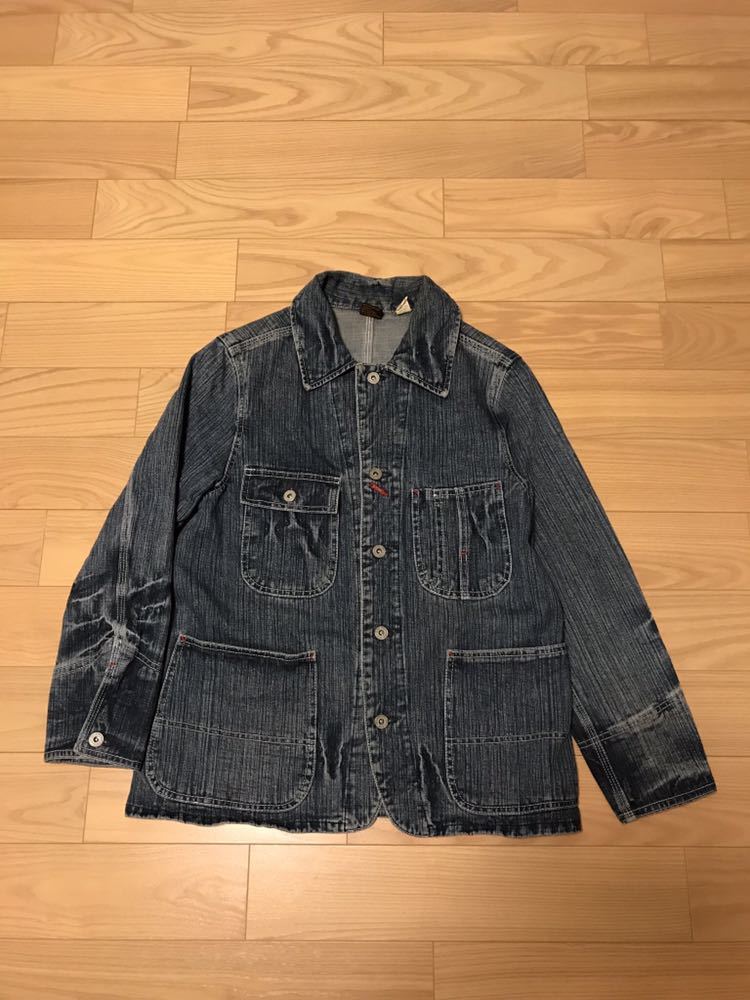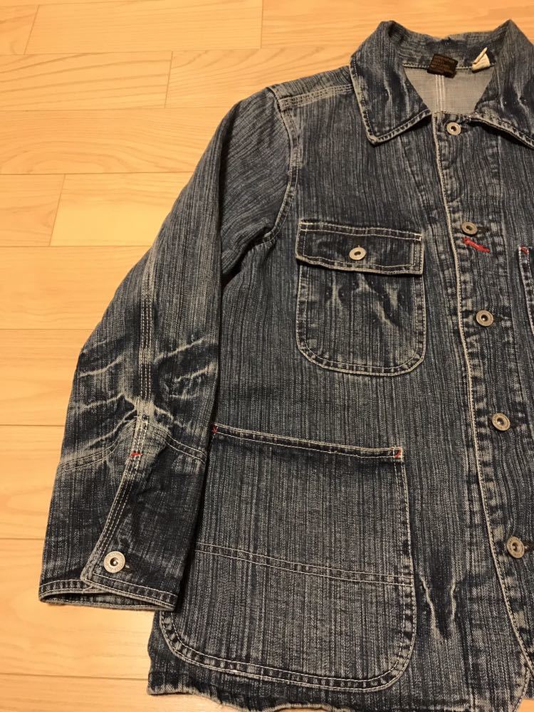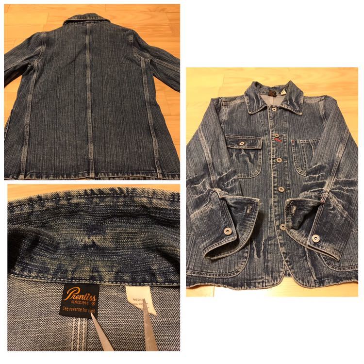 良品☆Prentiss/プレンティス ヘヴィオンス デニム Vintage&縦落ち加工 カバーオール M ドーナツボタン&懐中時計ウォッチポケット&3本針