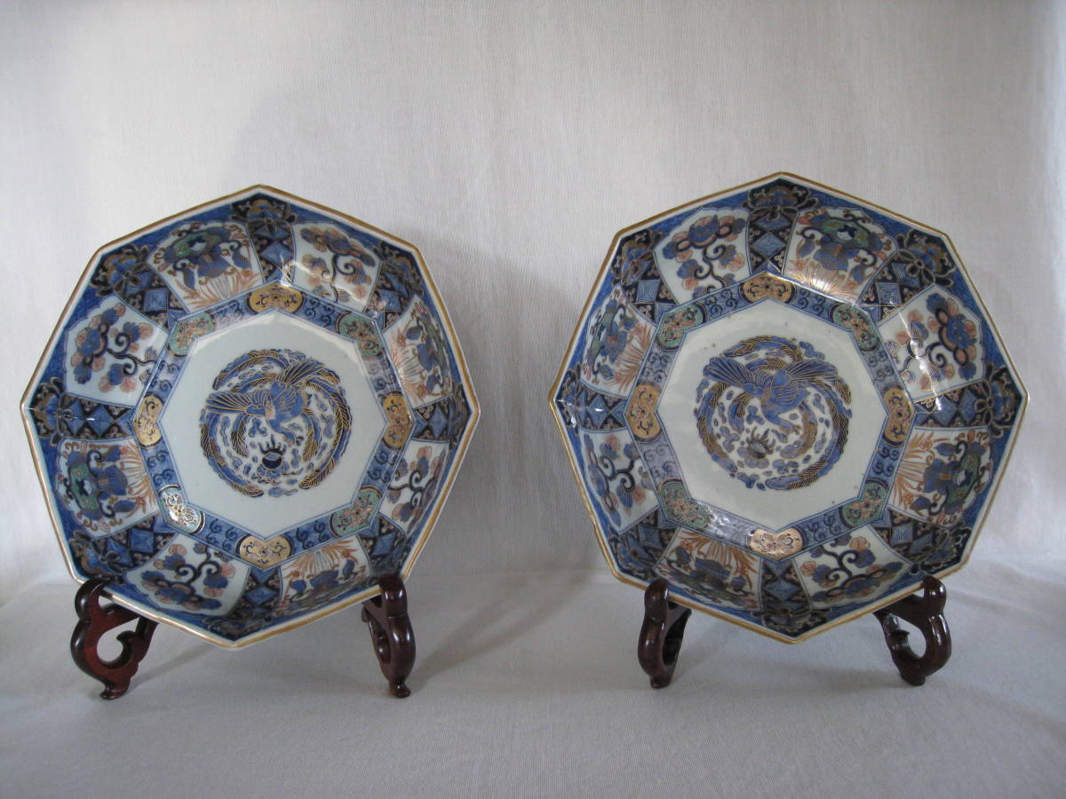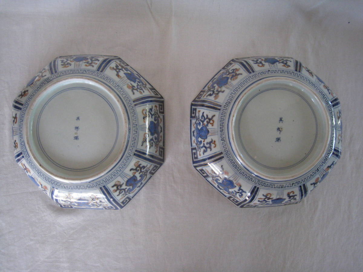 古伊万里の八角大鉢で一対の出品です 他に見かけることのない作品でございます
