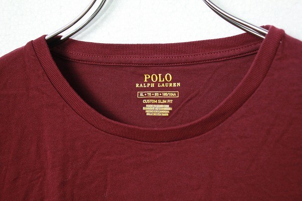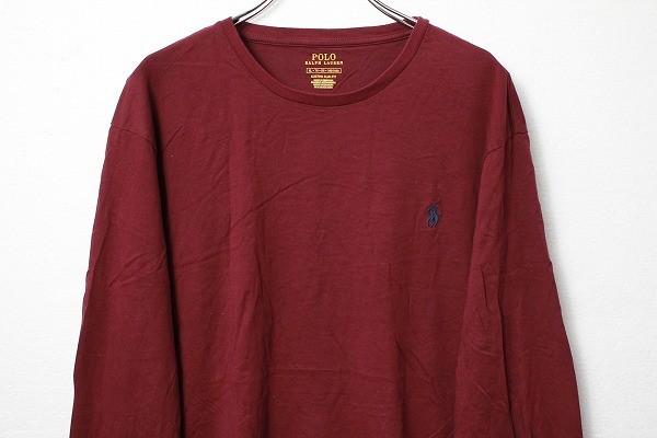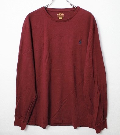 ポロ ラルフローレン クルーネック コットン 長袖 Tシャツ エンジ (XL) ロンT マルーン 無地 POLO RALPHLAUREN