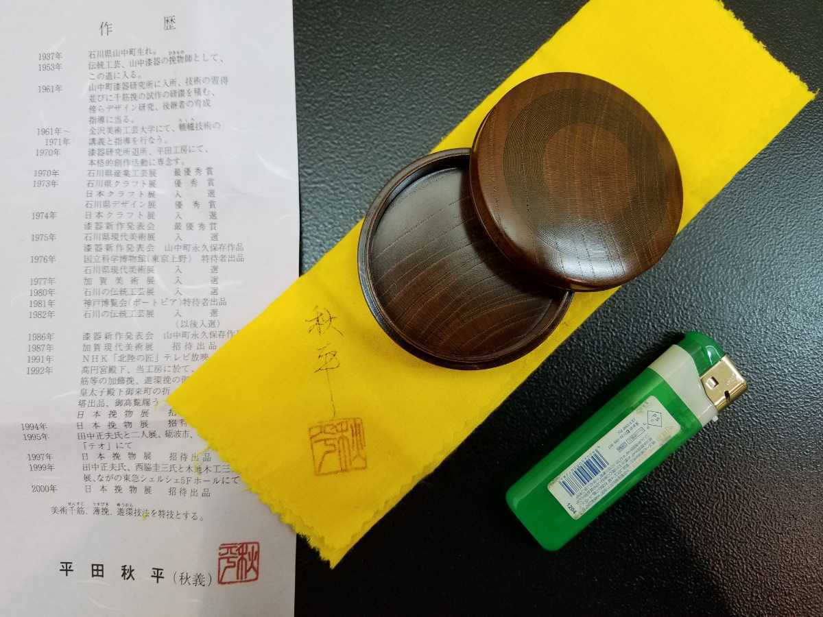 山中漆器を代表する伝統工芸士の平田秋平師 銘入りとなります。