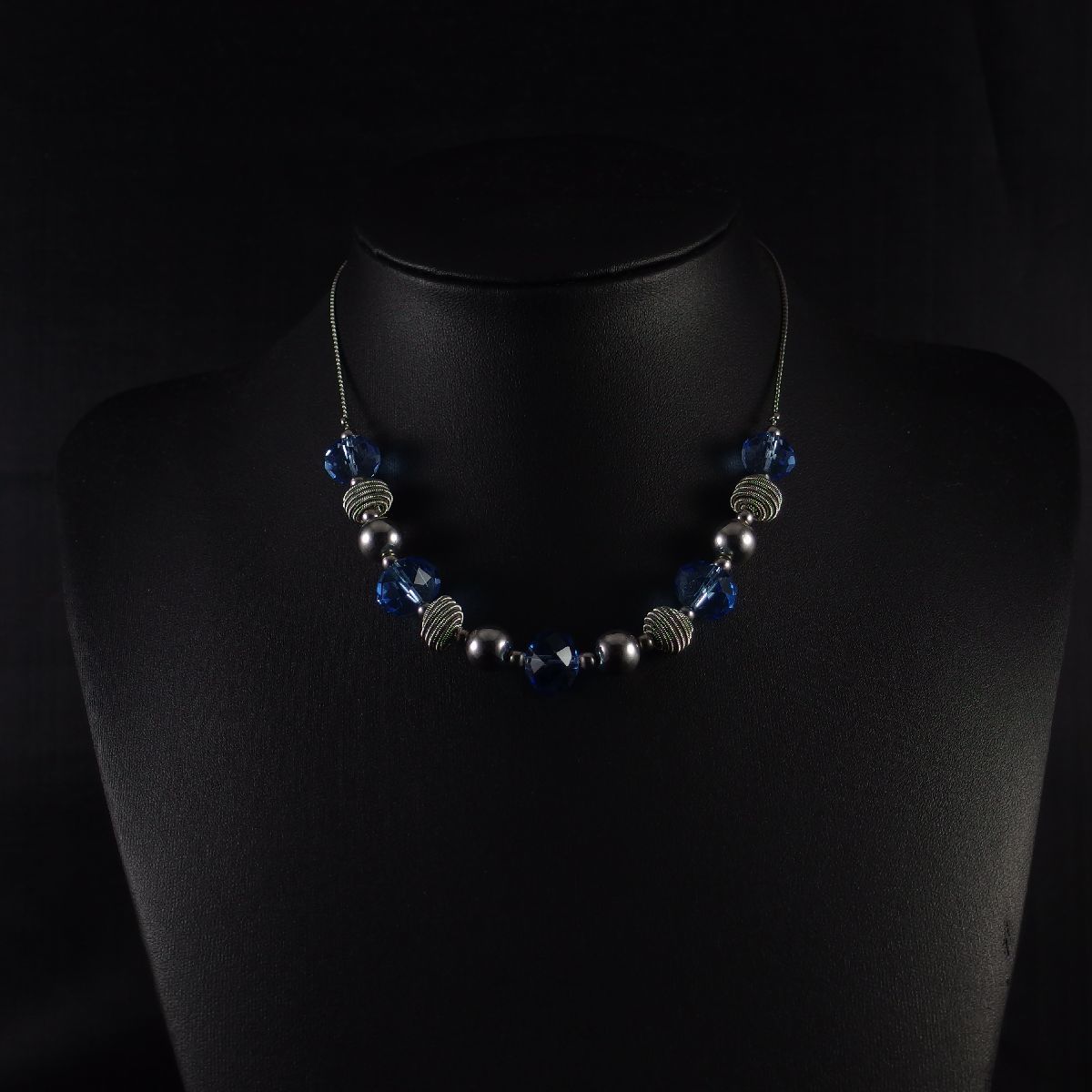 A5442◆ 【2028】◆ 多面カットの青いビーズが飾られたネックレス ◆ 長さ約38㎝~45㎝ ◆