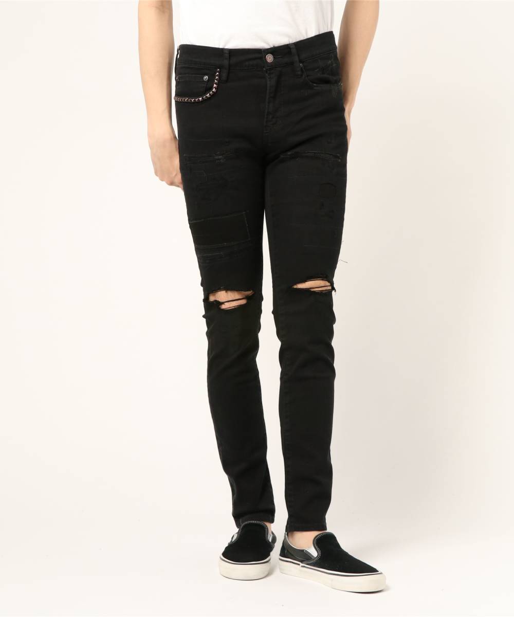 最新 HYSTERIC GLAMOUR SPBR加工 ISKO ストレッチデニムスキニースリムPT 完売 ヒステリックグラマー 28インチ N1