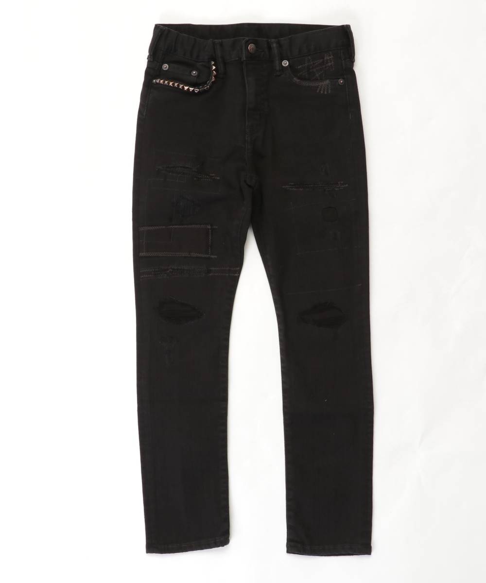 長年履き込んでできたダメージを再現し、ダメージ箇所にはデニム、スレキを使用しリメイクしました。