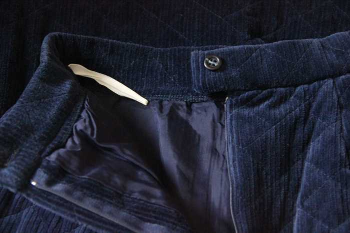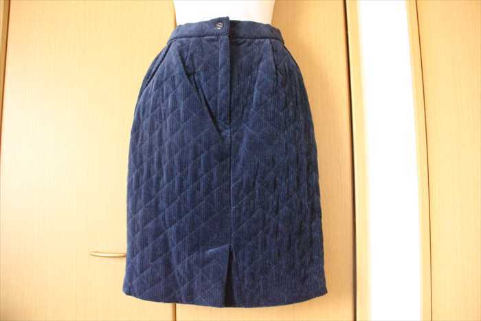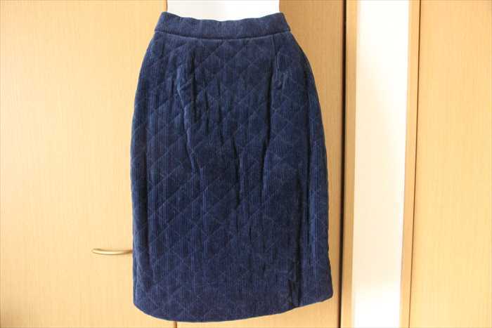 ★1回着!裏地付コーデュロイキルトスカートネイビー系サイズ58くらい/used/ 暖かい/冷え対策★ | ||||