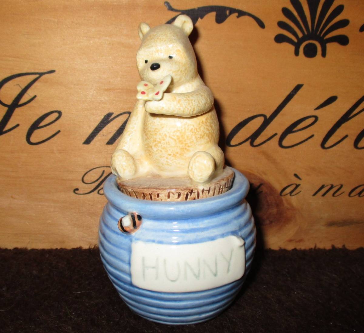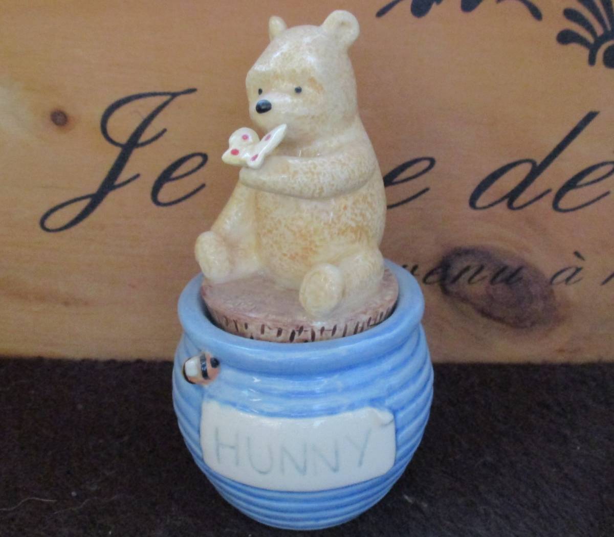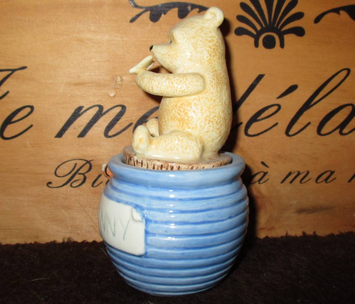 高さは約10センチ~11㎝です。数年前にネットショップで購入しました。使用はせずコレクションケースで飾っていました。ピアスとか金平糖とか入れるのでしょうか?詳しくわかりません。他にもクラシック・プー出品していますのでご覧ください。