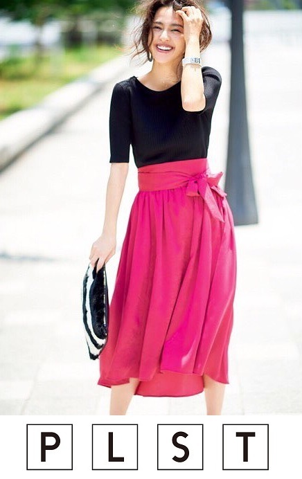■中村アンさん着用■PLST/プラステ■ベルト付きピーチサテンイレギュラースカート■ピンク/M