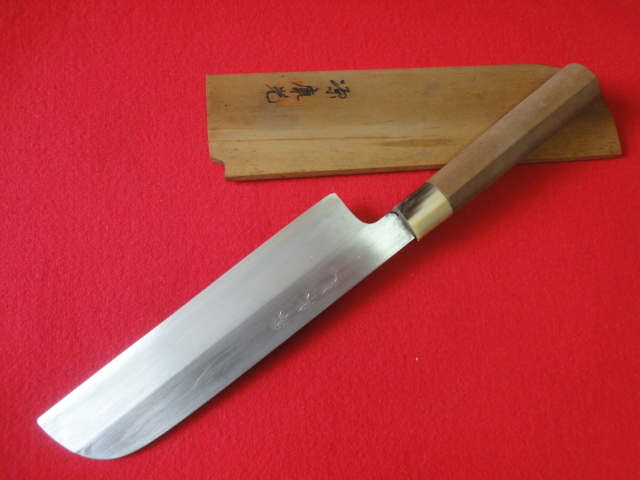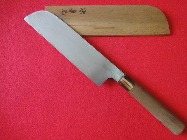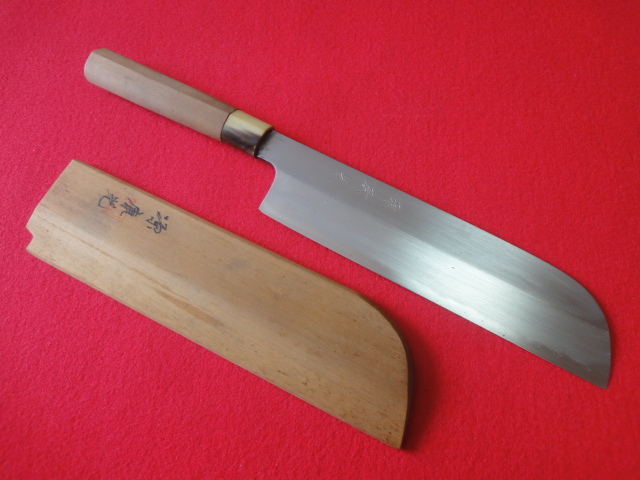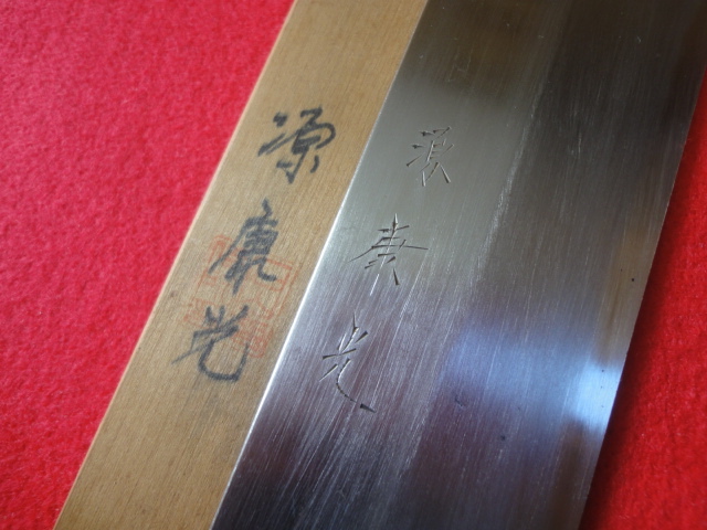 【源康光】薄刃包丁 刃渡22.3㎝ 全長39.5㎝ 峰厚5.3㎜ 片刃 ※鞘付 ※中古品 ※全国一律送料1100円