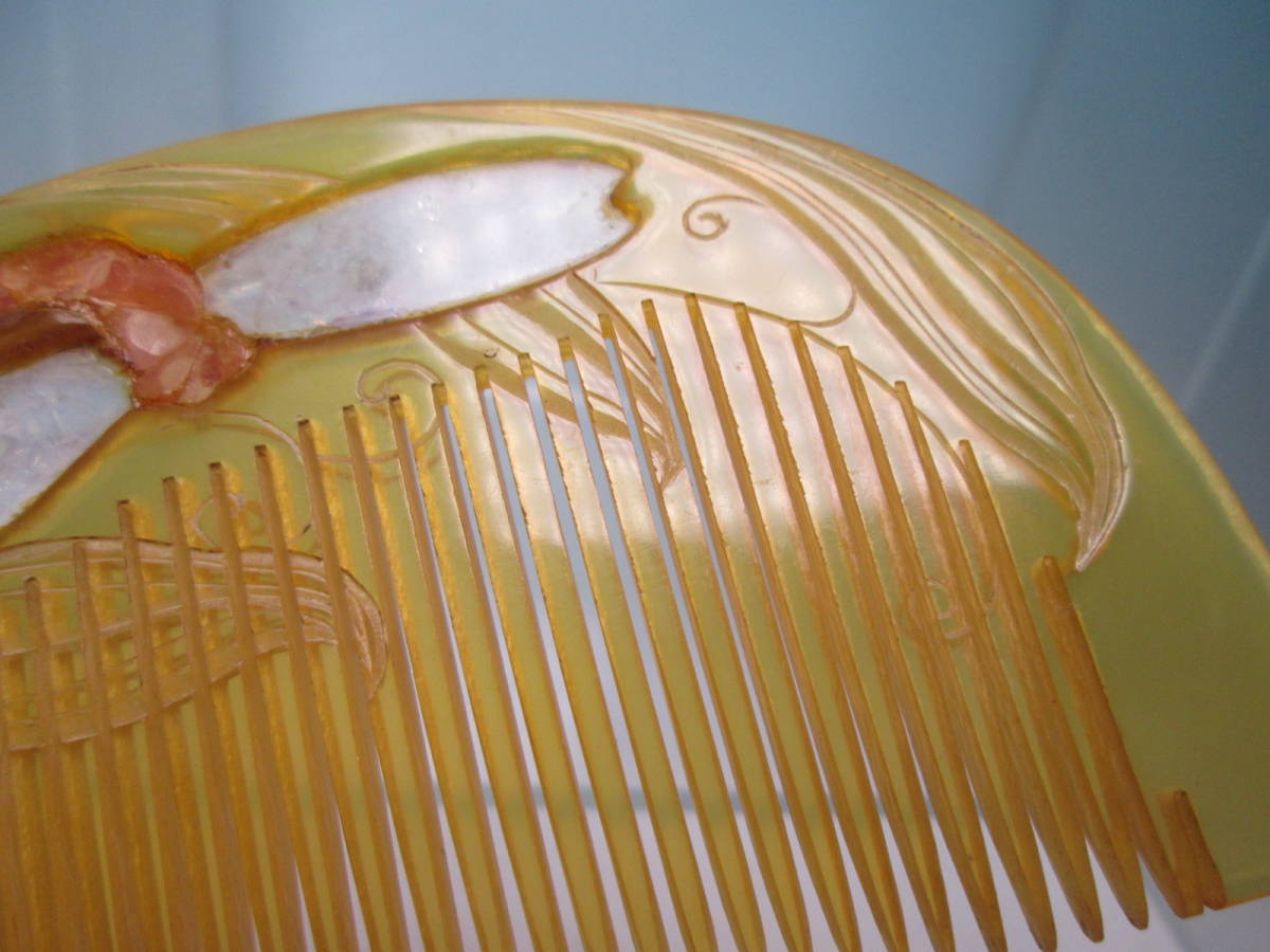 【江月】アンティーク・井筒屋 白石&天然石細工 蜻蛉の櫛 木箱付