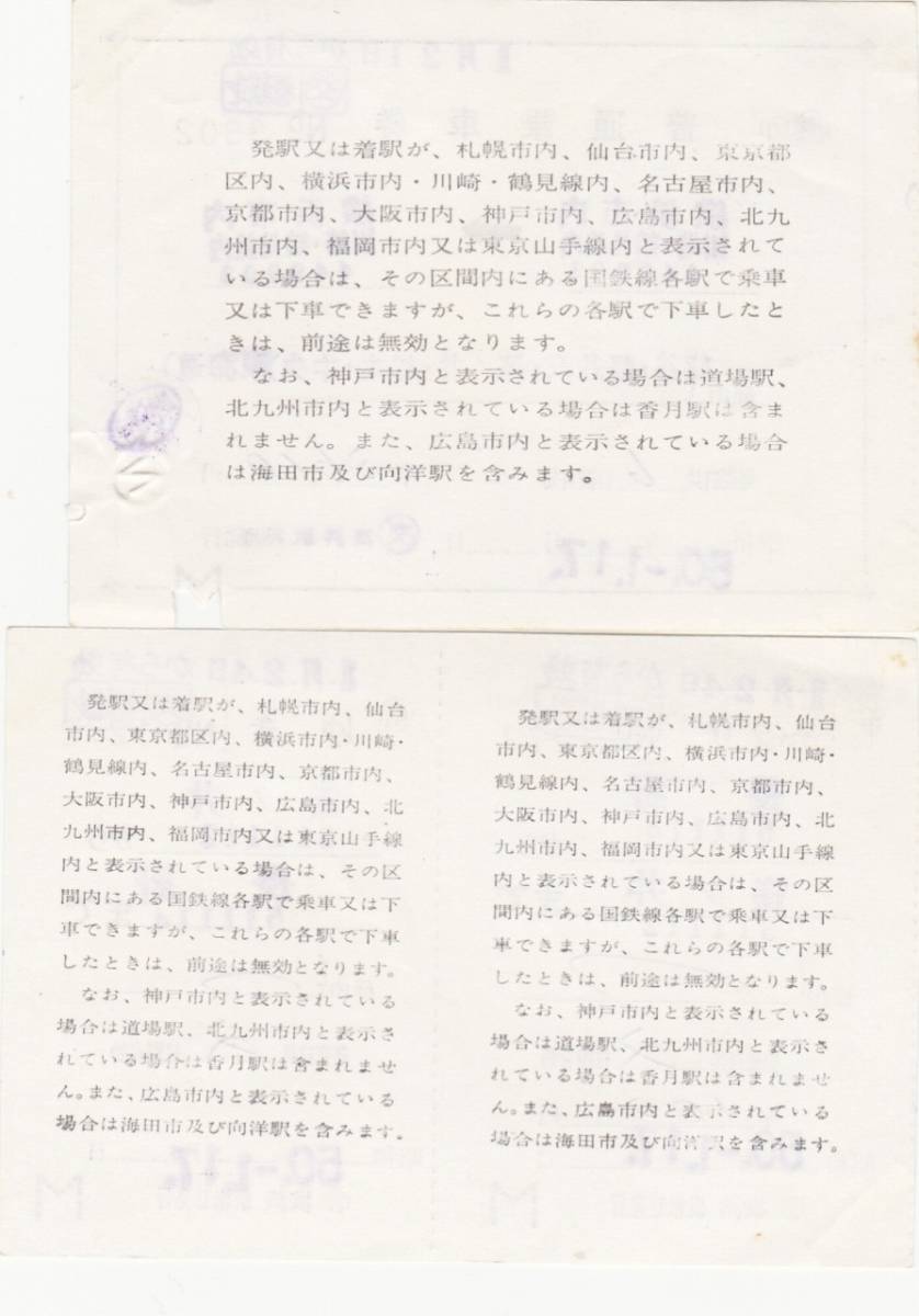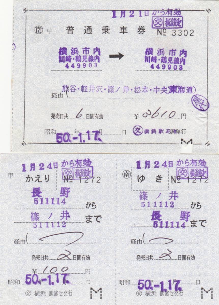 【国鉄】日本交通公社 横浜旅行センター発行 補充片道乗車券+補充往復乗車券