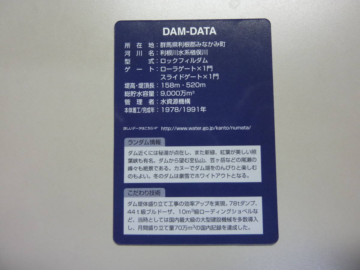 奈良俣ダム 送料0円!DAM ならまただむ 群馬県利根郡みなかみ 利根川水系楢俣川 ダムカード