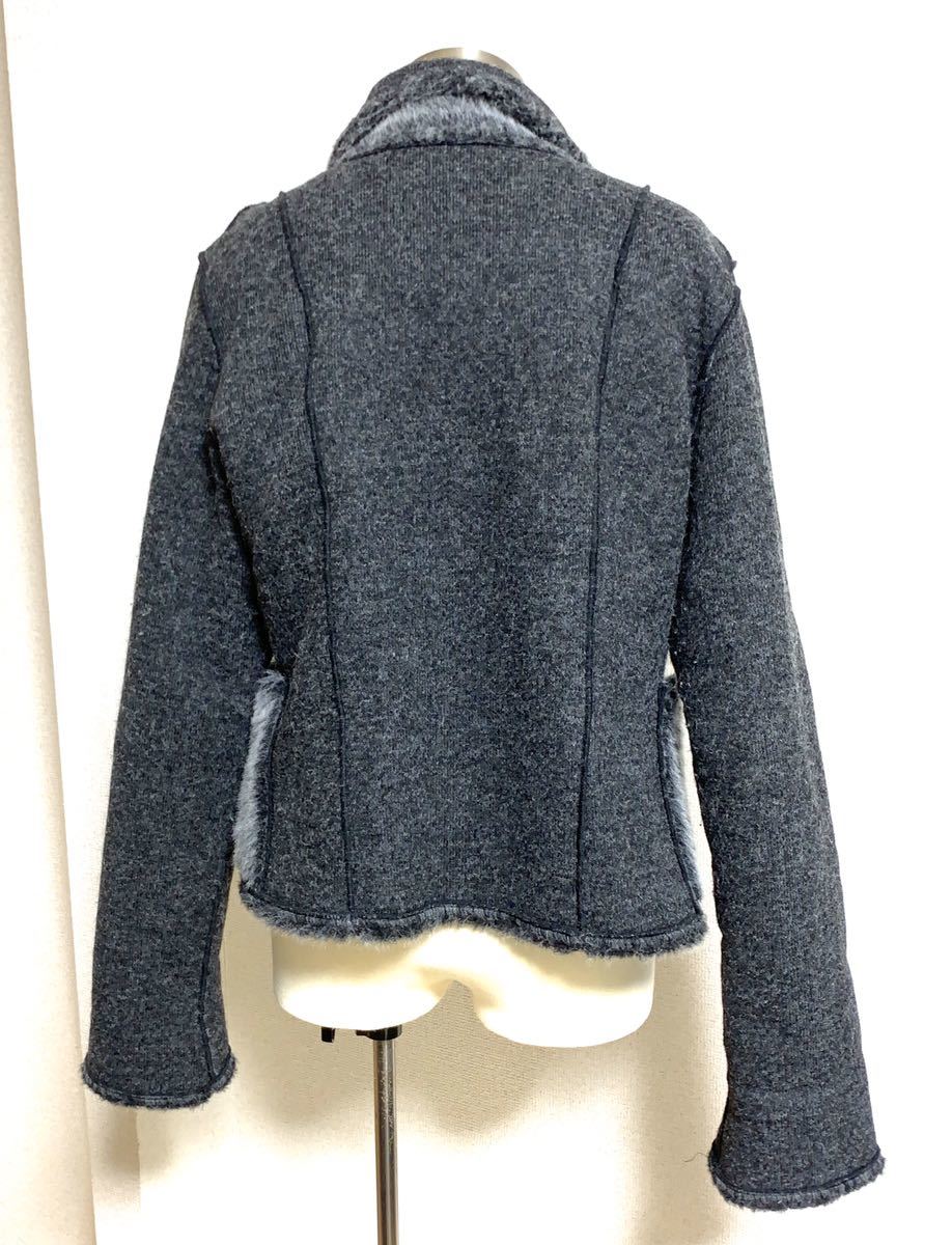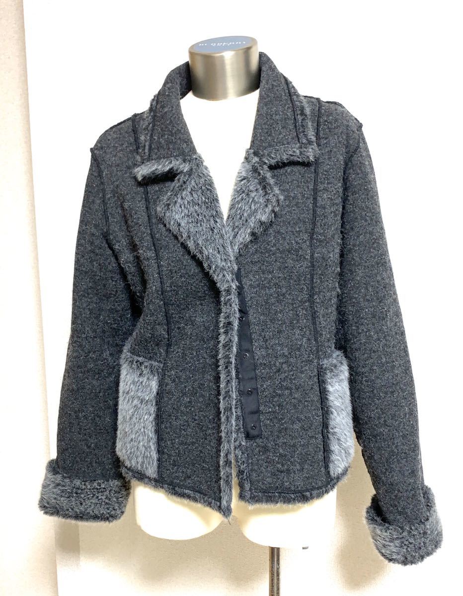 | 商品詳細 ■ムートン調のフェイクファー使い、厚手の、ニットジャケットになります。 内側は毛足の長いふんわりとしたシャギーニット地で、襟の下半分と ポケットはシャギーファーが表地になっています。 前中心スナップボタン 両サイドポケット付き ■生地;表:ポリエステル100% 裏:アクリル100% ■サイズ表記:38 実寸:cm 肩幅;44.5 身幅;48 着丈;55 袖丈; 68 ■状態;usedですが特に記載するダメージありません。 |