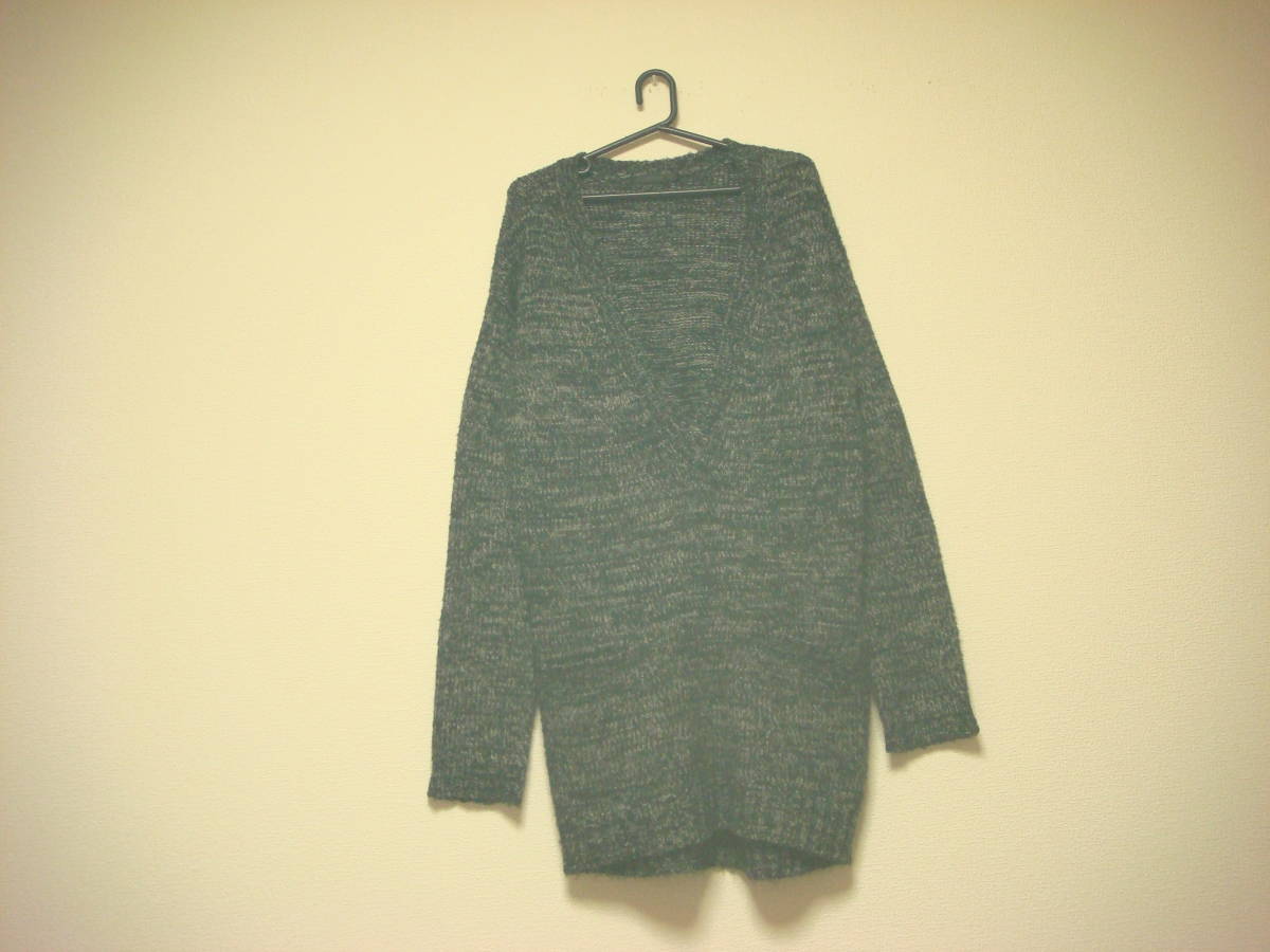 マウジー Vネック ゆったり ニット チュニック ワンピース 濃いグレー
