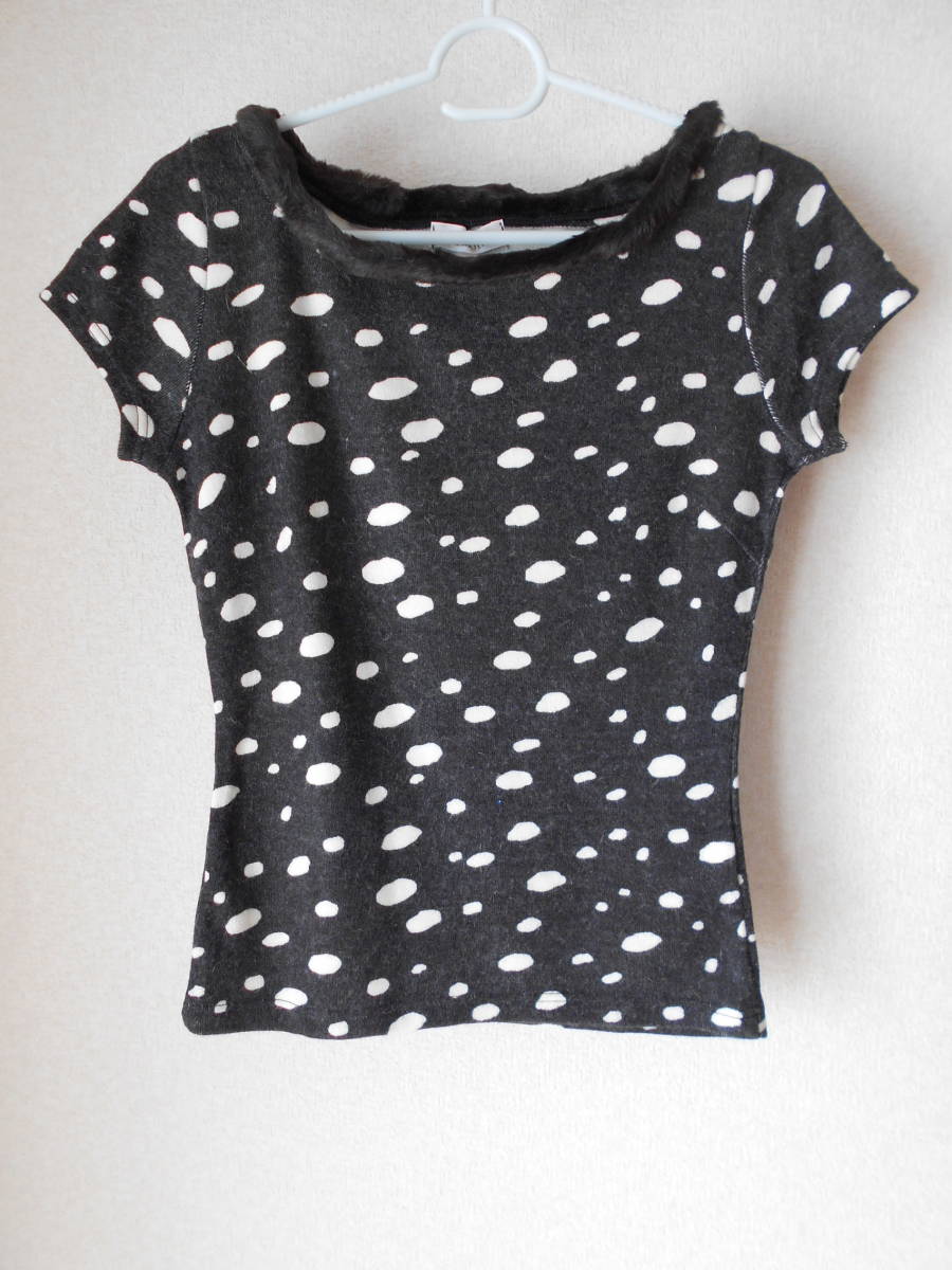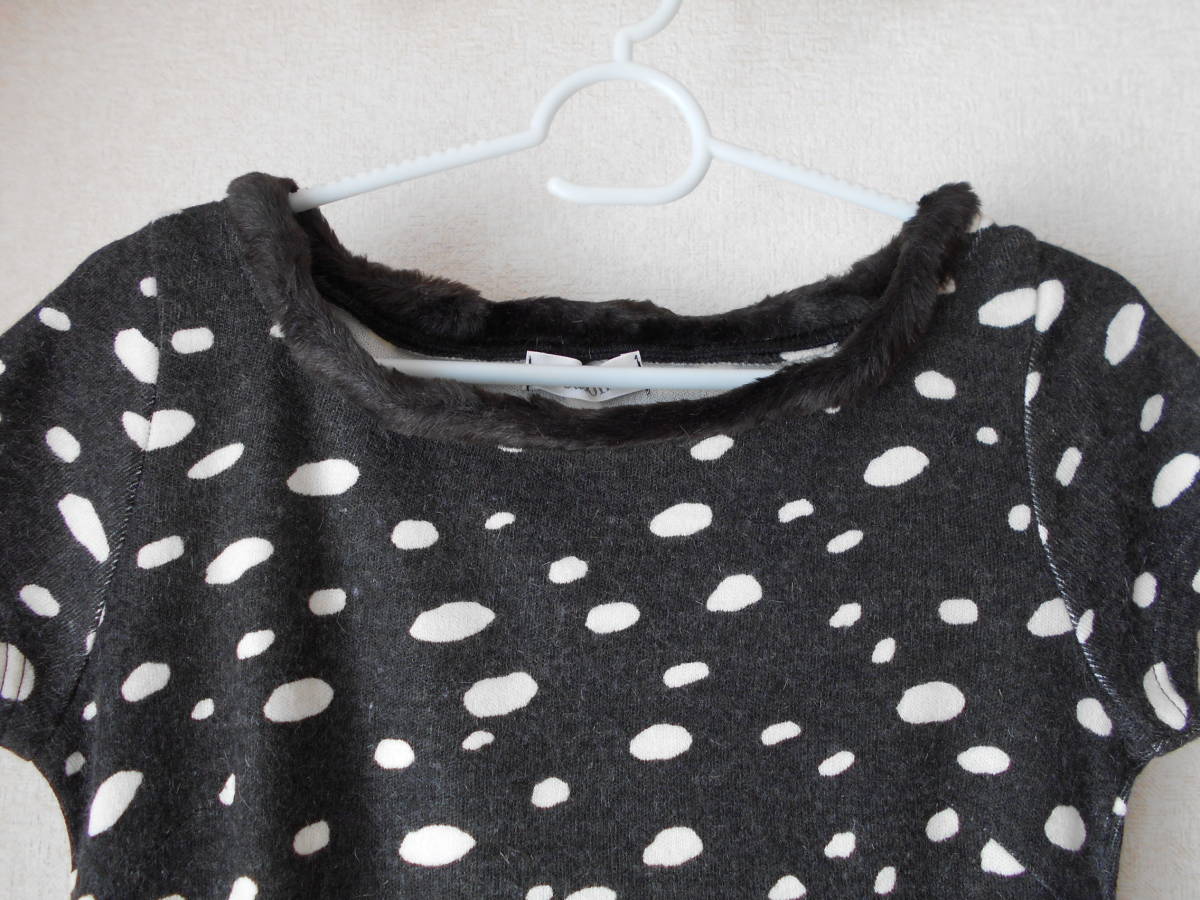★1度使用★首元にフェイクファーが付いた水玉模様のセーター