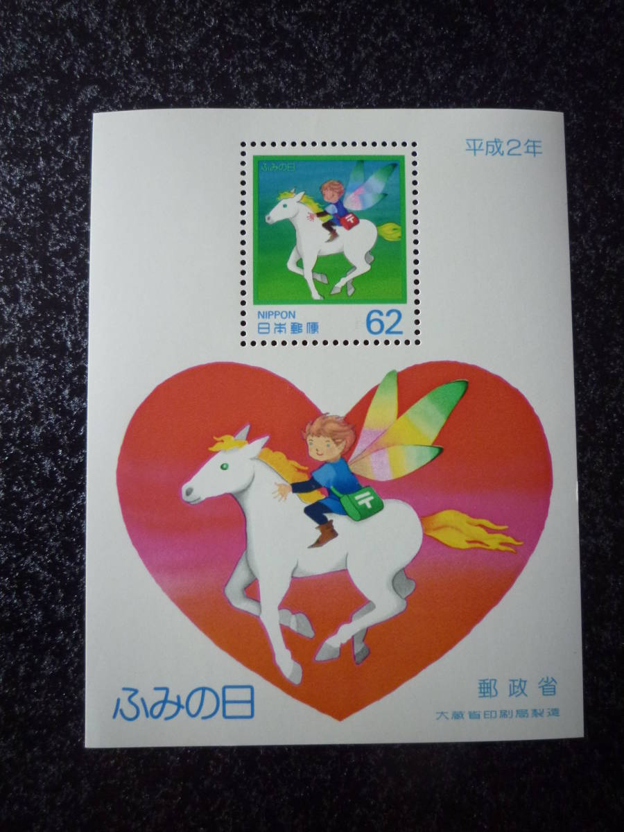 ふみの日切手 1シート 平成2年 62円×1枚 | |||||||||||