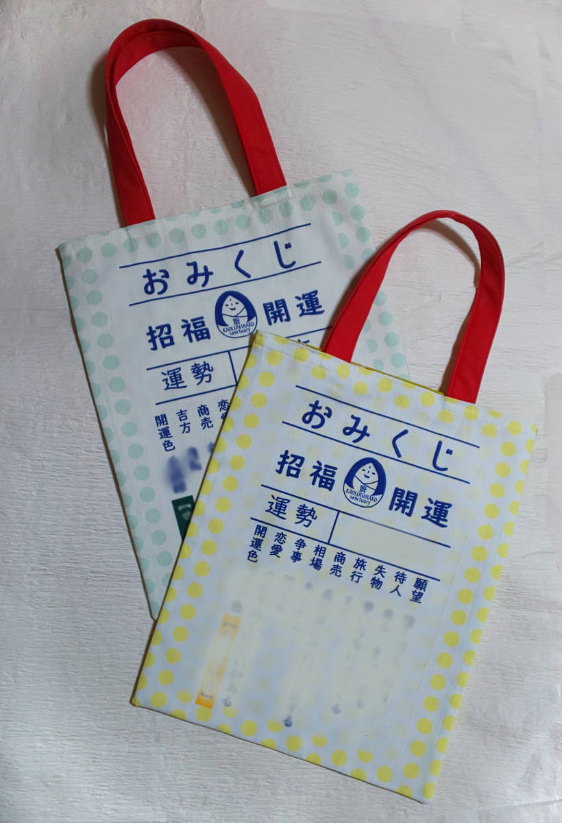 ☆ハンドメイド☆おみくじバッグ オリジナルデザイン おみくじプリント手さげカバン お洒落ギフト 運ためし