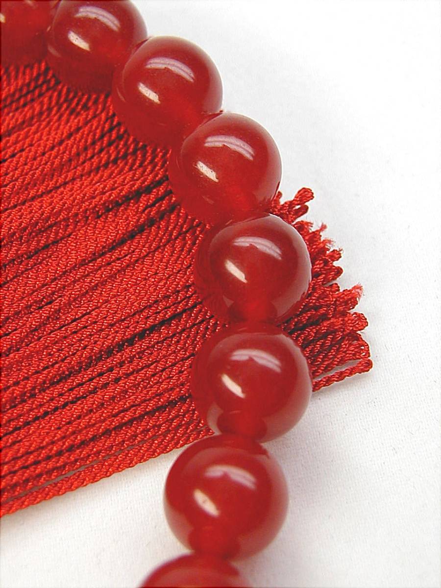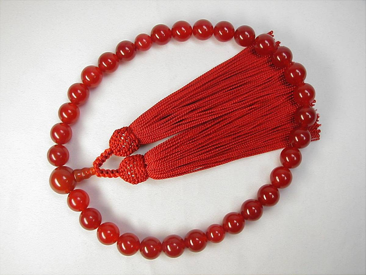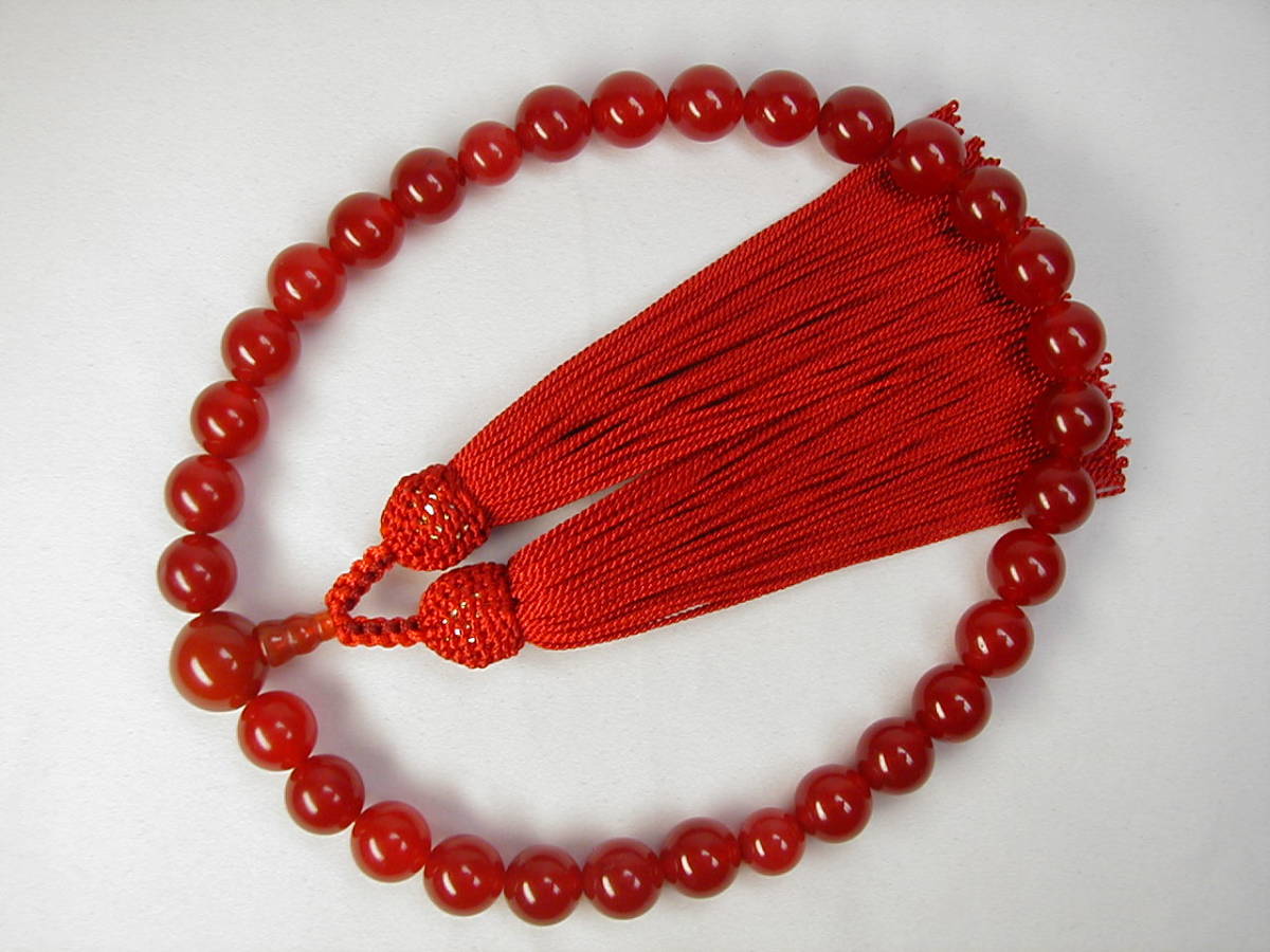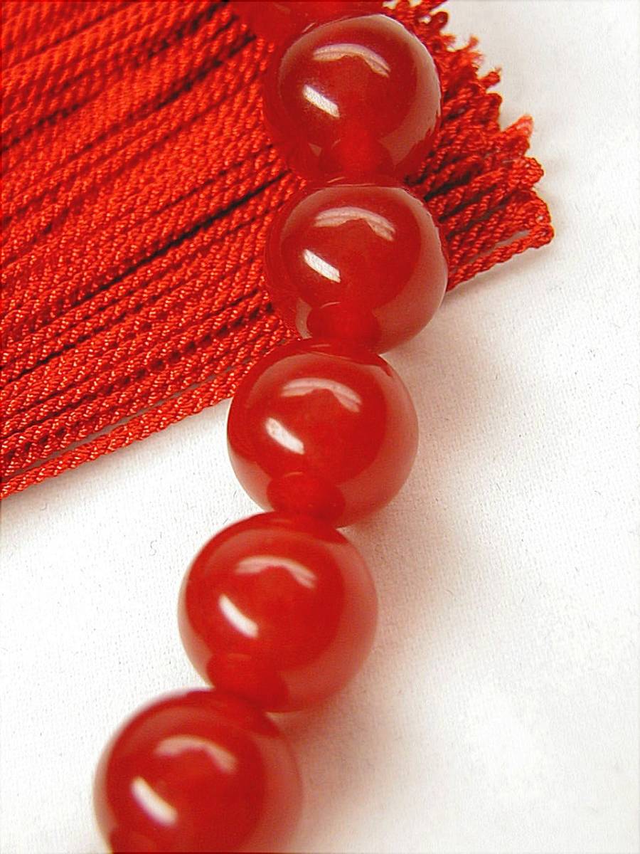 この品は、最高の材料を使用し、中国北京の中国工芸美術品総合会社の数珠製作名職人にお願いして 注文した品です。手作業により製作した品です。数珠に使用されている玉(主玉、二天玉)は、全て同じ品質珍品天然最高AAA級極品大粒新疆于田赤玉の玉です。親玉、ボサに使用されている珠玉は、天然最高AAA級極品大粒赤瑪瑙の玉です。
