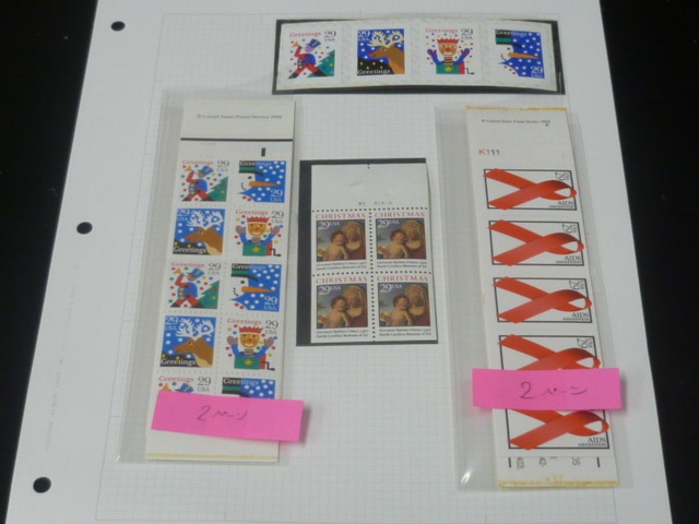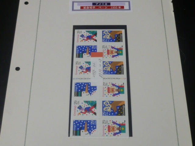 20 S アメリカ切手 №218 1993年 記念 切手帳・ペーン クリスマス・他 シール式含 計5点 2リーフ 未使用NH
