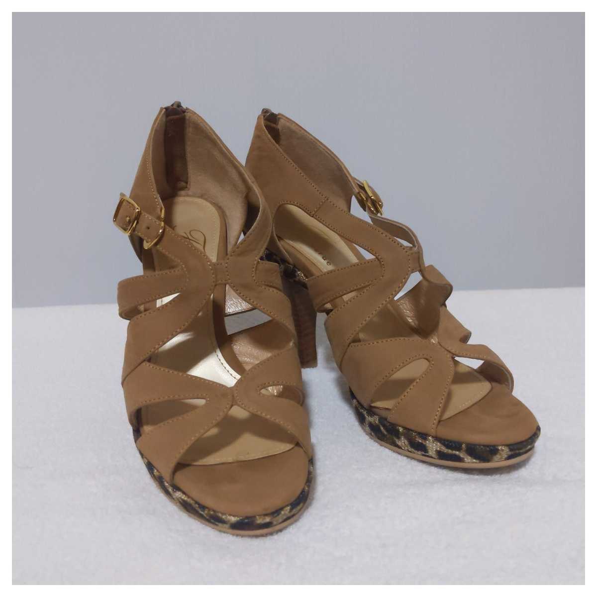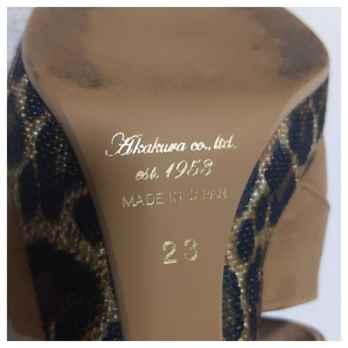 ☆ 美品 1回使用 Flag blu-verde レザー レオパード ヒョウ柄 サンダル サイズ23 日本製 ベージュ