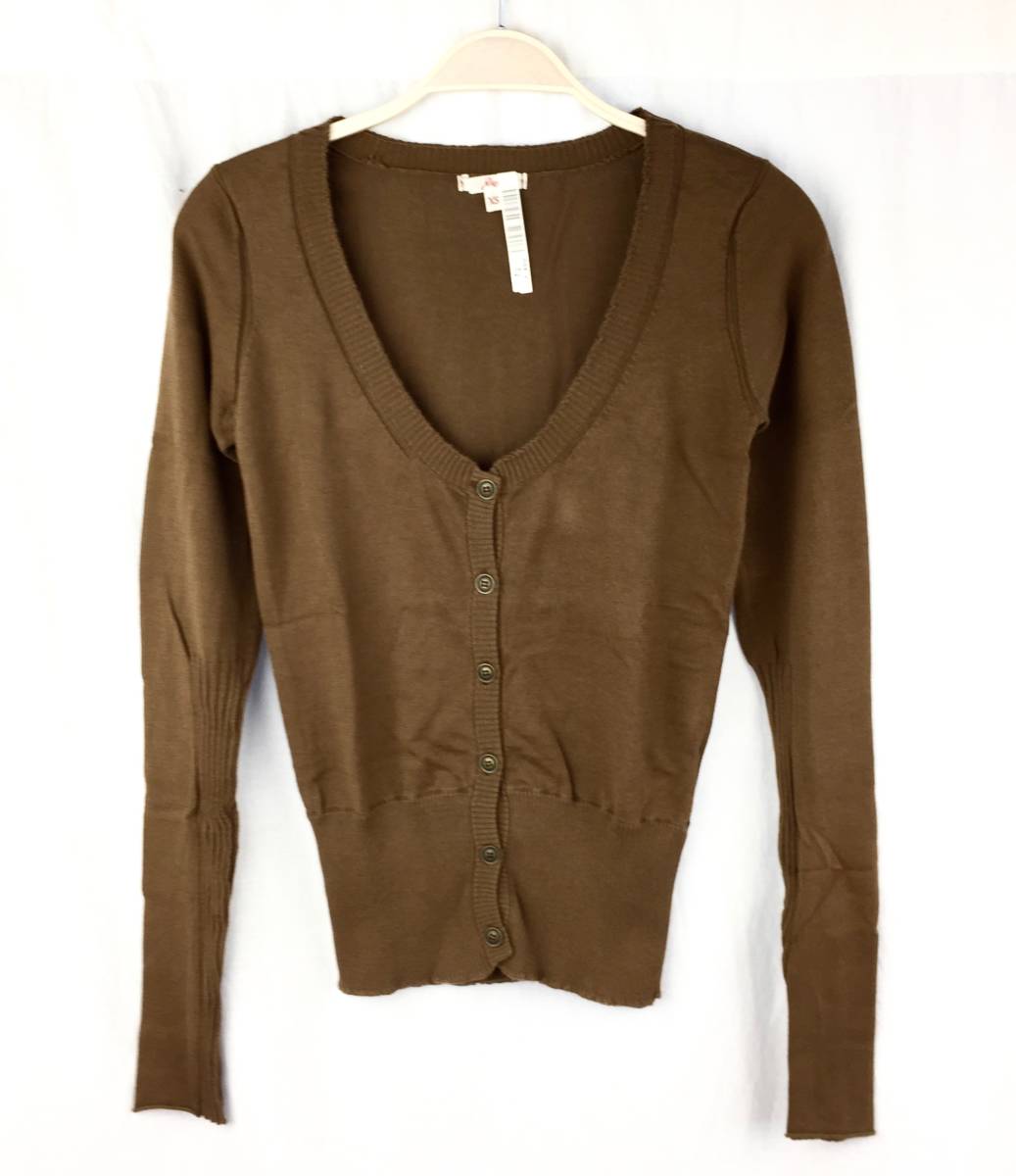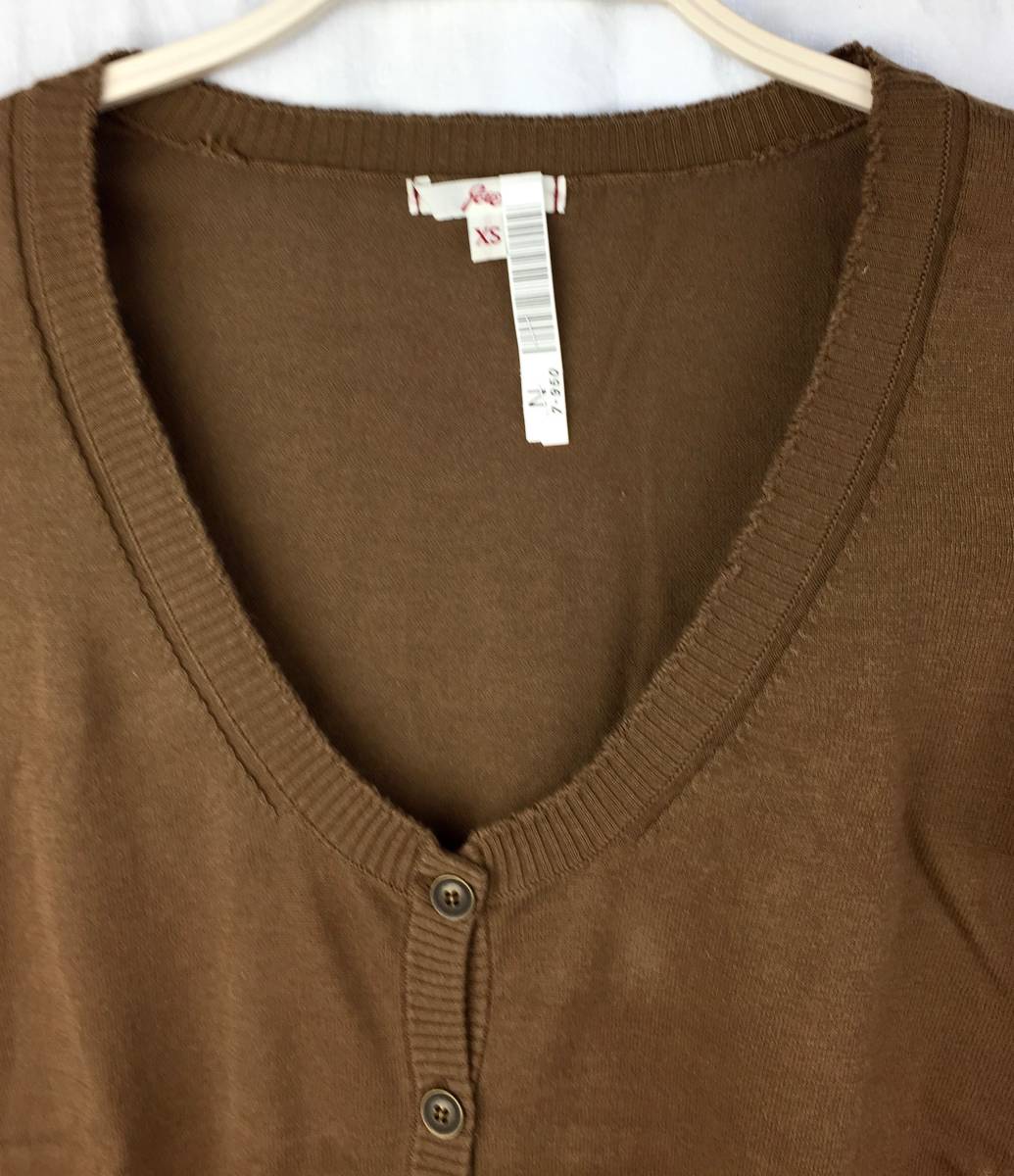 Joie ジョア シルク混 カーディガン。シルクが入っているので手触りがいいです。袖の一部がリブ編みでウエストのリブも幅広なのですっきりとしたシルエットになります。 ●サイズ XS ・肩幅 33cm ・身幅 37cm ・身丈 57cm ・そで丈 63cm *フラットにて採寸。多少の誤差はご了承ください。 ●素材:コットン70%/シルク30% ●色:ブラウン **ご注意ください** *クリーニングに出してから着ることなく閉まっておりました。クリーニングタグをつけて撮影をしております。 *特に目立つヨゴレなどはなく状態はいいと思いますが、中古品ですので、ご理解の上ご入札ください。気になる方、神経質な方はご入札をお控えください。 ●他にも多数出品中。ぜひご覧ください! | |||