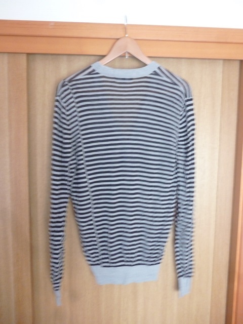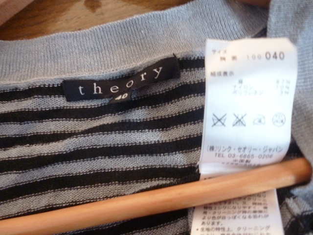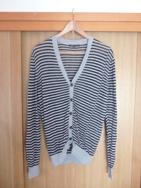 □theoryセオリー正規品リネン薄手カーディガンボーダー40サイズ切替デザインでお洒落メンズレディース兼用OK□
