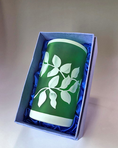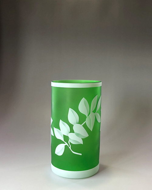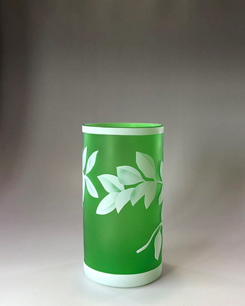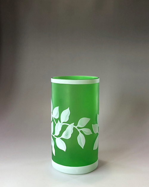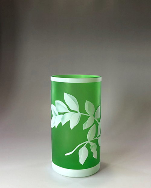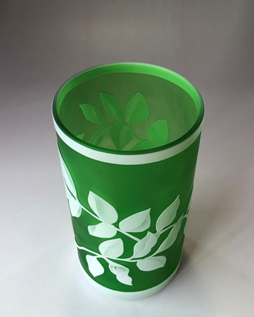 ●●●新品・アールヌーボーのガレ花瓶・被せ硝子花瓶・ヌルデモミジ●●●