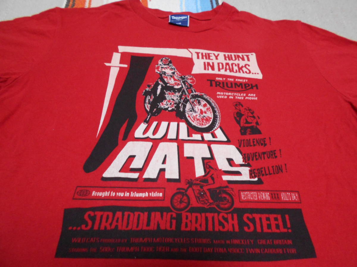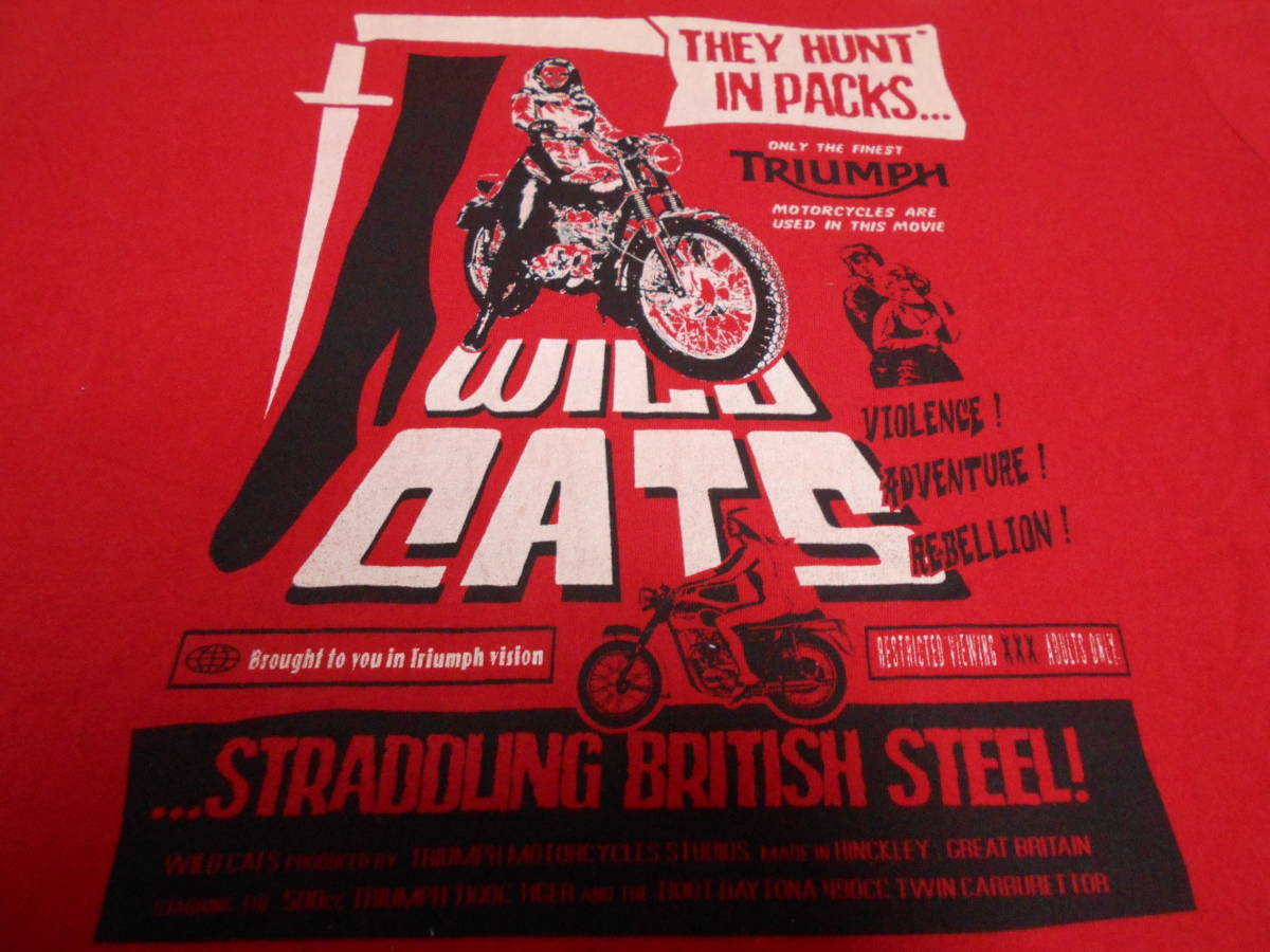 TRIUMPH WILD CATS トライアンフ オートバイ厚手コットン100%Tシャツ モトクロスHOTROD CHOPPER DIRT TRACKER CAFE RACER VINTAGE STP BMX