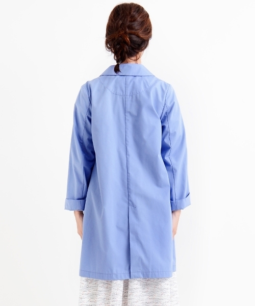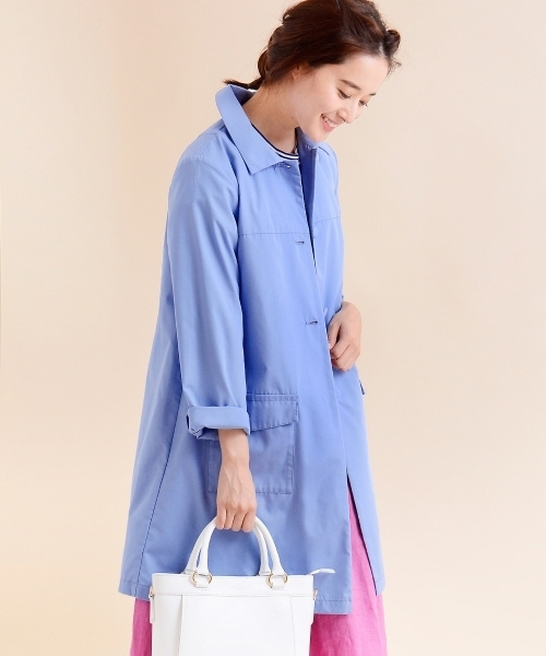 軽やかさと腰のある上質な生地、ウェザークロスを使用したステンカラーコートです。 軽く羽織ることができ、生地感も柔らかいのでシャツの様に袖をロールアップする着こなしもおすすめです。 くるみボタンやチラッと見える裏地も可愛いです。