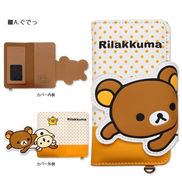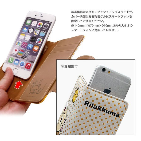 未使用 iPhone X/iPhone8/iPhone7スマホケース 手帳型 多機種対応 Mサイズ Xperia GALAXY AQUOS スマホカバー エクスぺリア リラックマ手帳