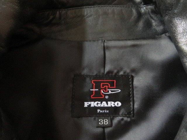 ■綺麗な 美品 羊革【FIGARO】フィガロ 高級 レザー ジャケット コート 9号 M【38】ブラック 黒 本革 C475
