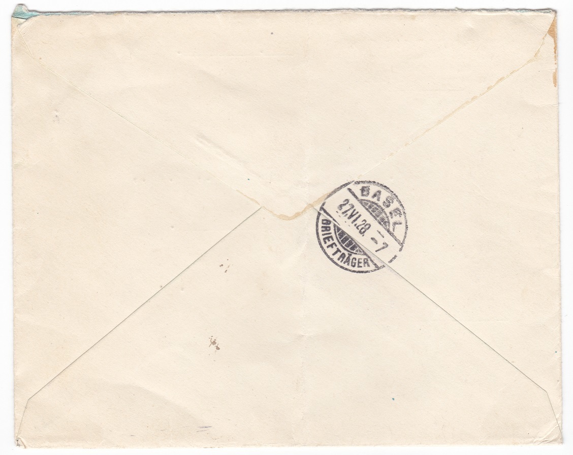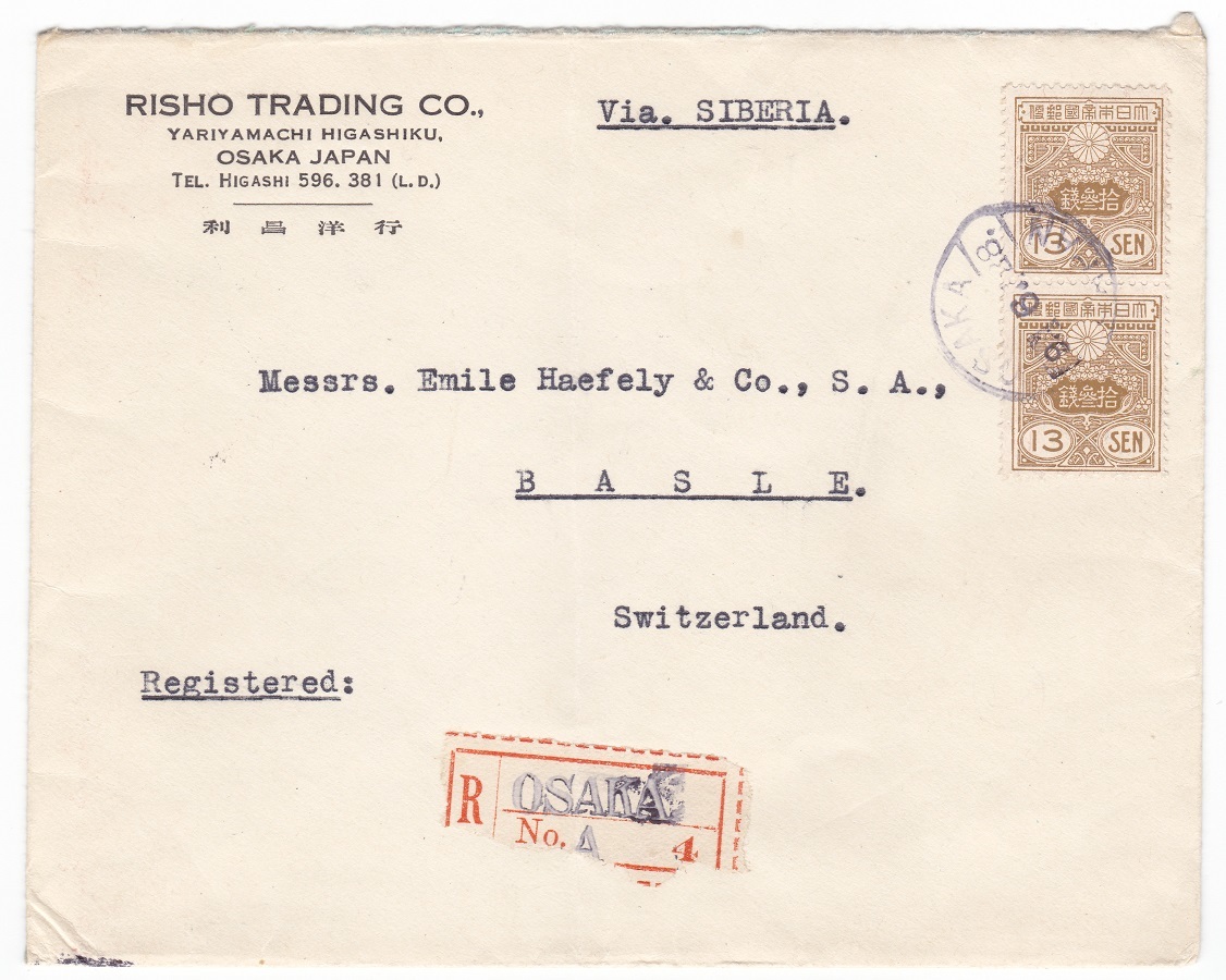 田沢旧大正毛紙13銭縦連貼書留外信書状 スイス宛