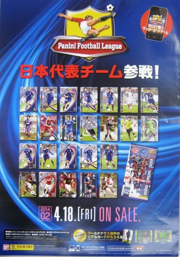 非売品 パニーニ フットボール リーグ 2014-02 トレーディングカード PFL06 販売告知ポスター サイズ B2 (51.5 cm × 72.8 cm) #291 *サイズ約 72.8×51.5(cm)[B2 (51.5 cm × 72.8 cm) ] 未使用品です。状態は画像をご覧ください。なお昔の品の為、キズ、折れ、汚れなど経年変化の場合がございます。また画像に見えない瑕疵の場合が御座いますので予めご了承ください。
