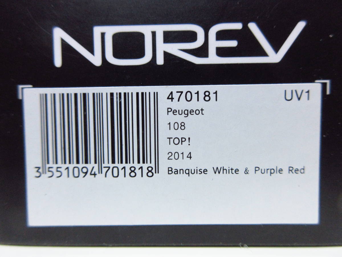 1/43 NOREV ノレブ プジョー108 Peugeot 108 TOP 2014 ミニカー ホワイト Banquise White & Purple Red