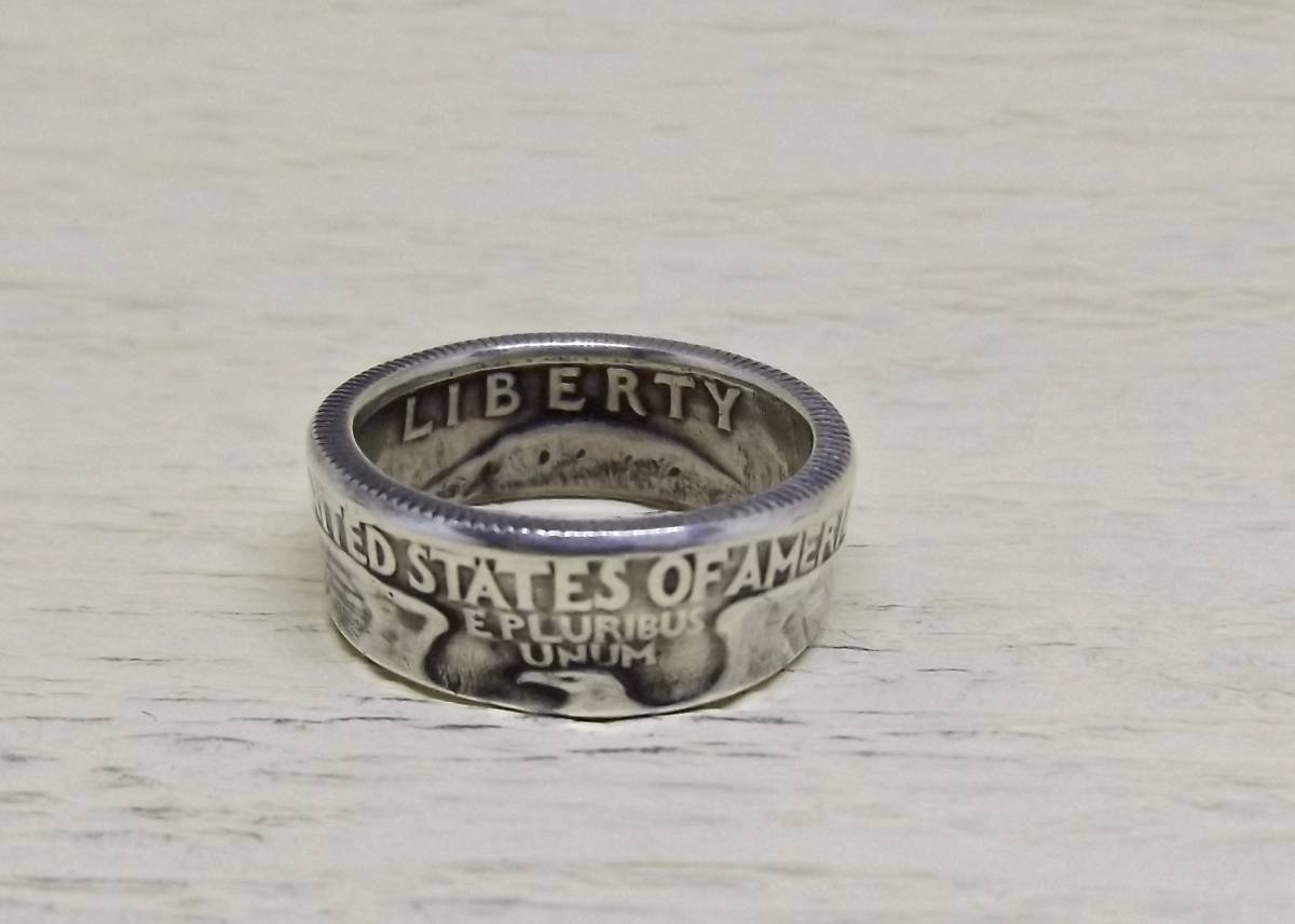12号サイズ  新品 未使用  コインリング 25セント銀貨使用  (10552)送料無料 本物のコインで制作した手作り銀の指輪